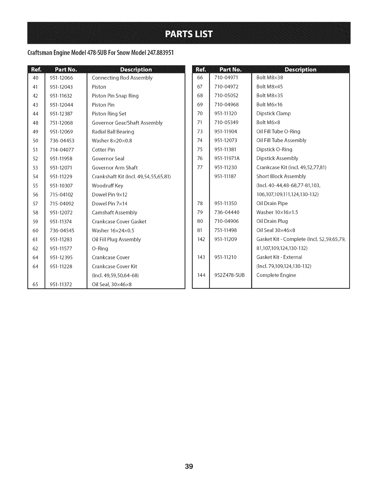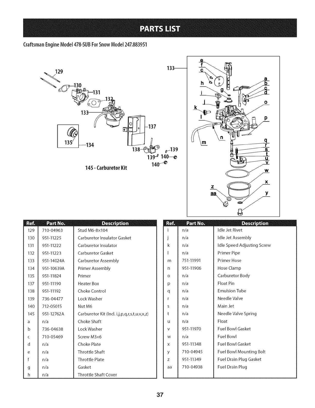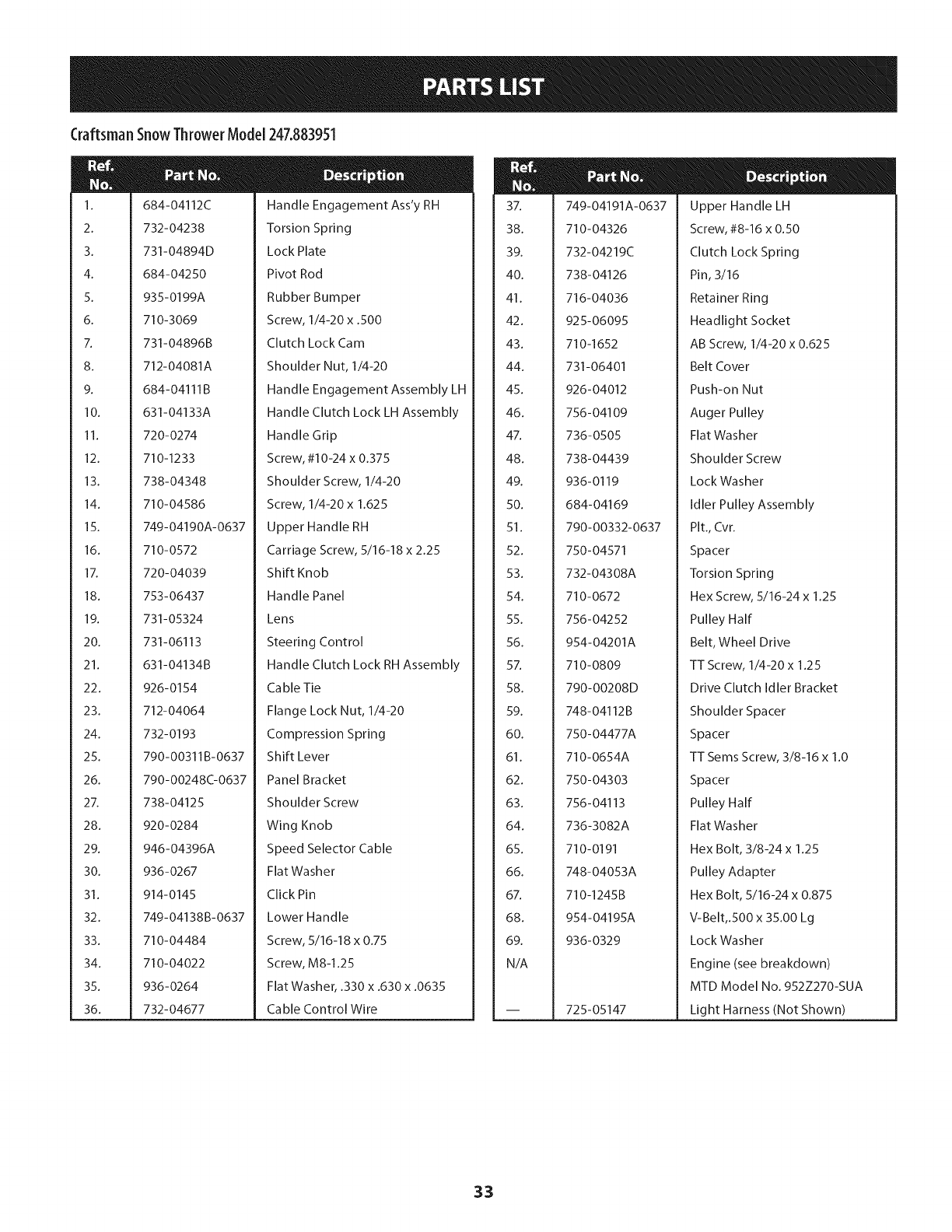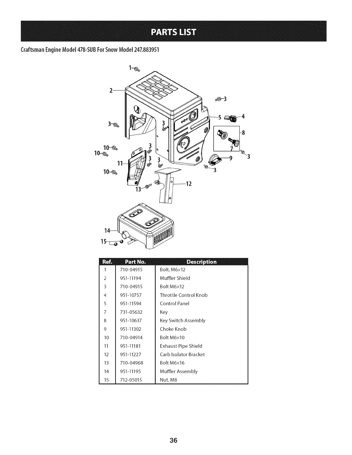 User Manual: Craftsman 247883951 247883951 CRAFTSMAN SNOW THROWER - Manuals and Guides View the owners manual for your CRAFTSMAN SNOW THROWER #247883951. Home:Lawn & Garden Parts:Craftsman Parts:Craftsman SNOW THROWER Manual