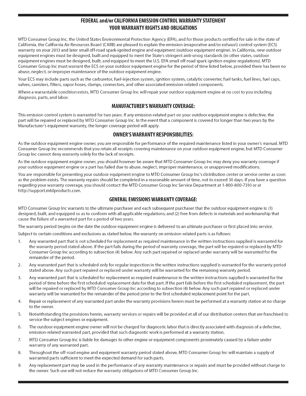 8. Durantelatotalidaddelperiododegarantiadelmotoryequipoparatodoterrenoarribamencionado,MTDConsumerGroupInc