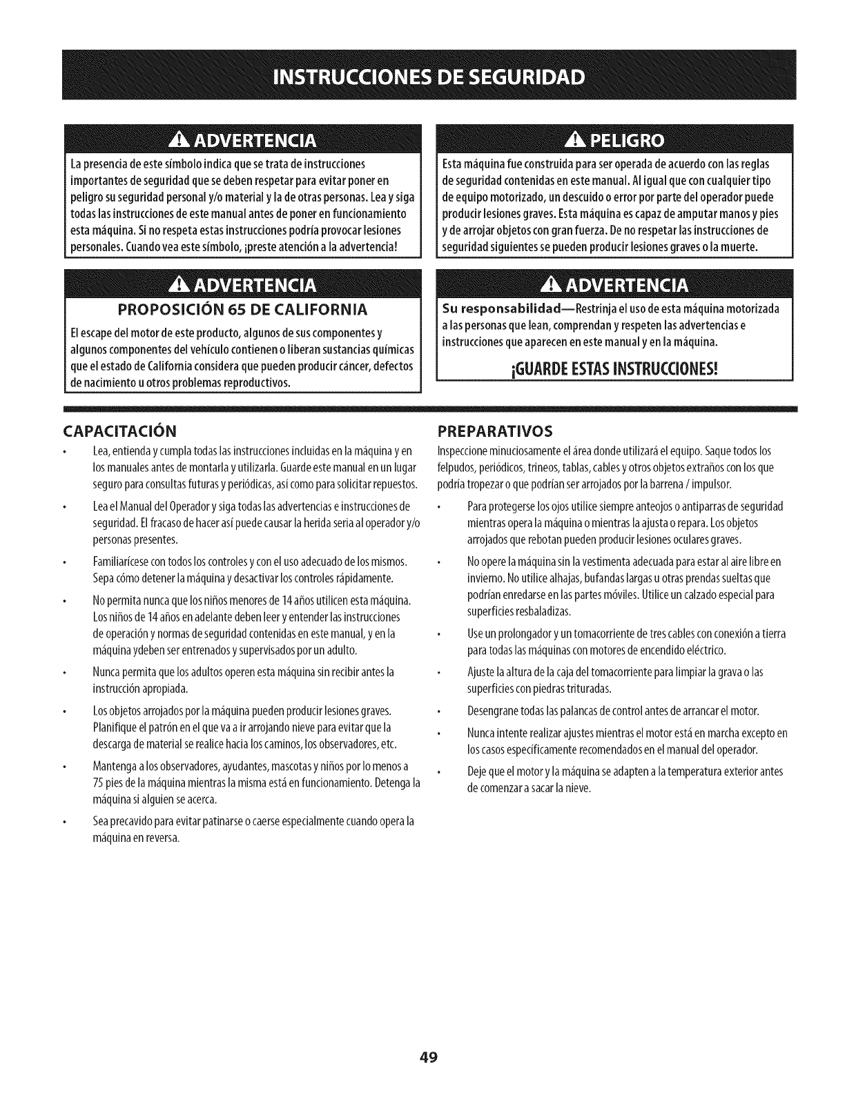 throwingdebris.Failureto observethefollowing safety instructionscould