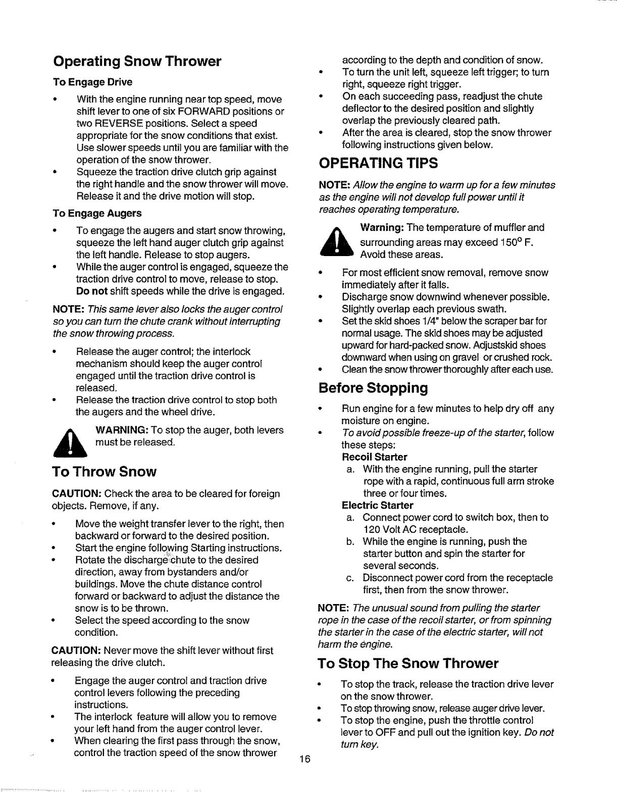 Your snow thrower was built to be operated according to the rules for safe operation inthis manual. As