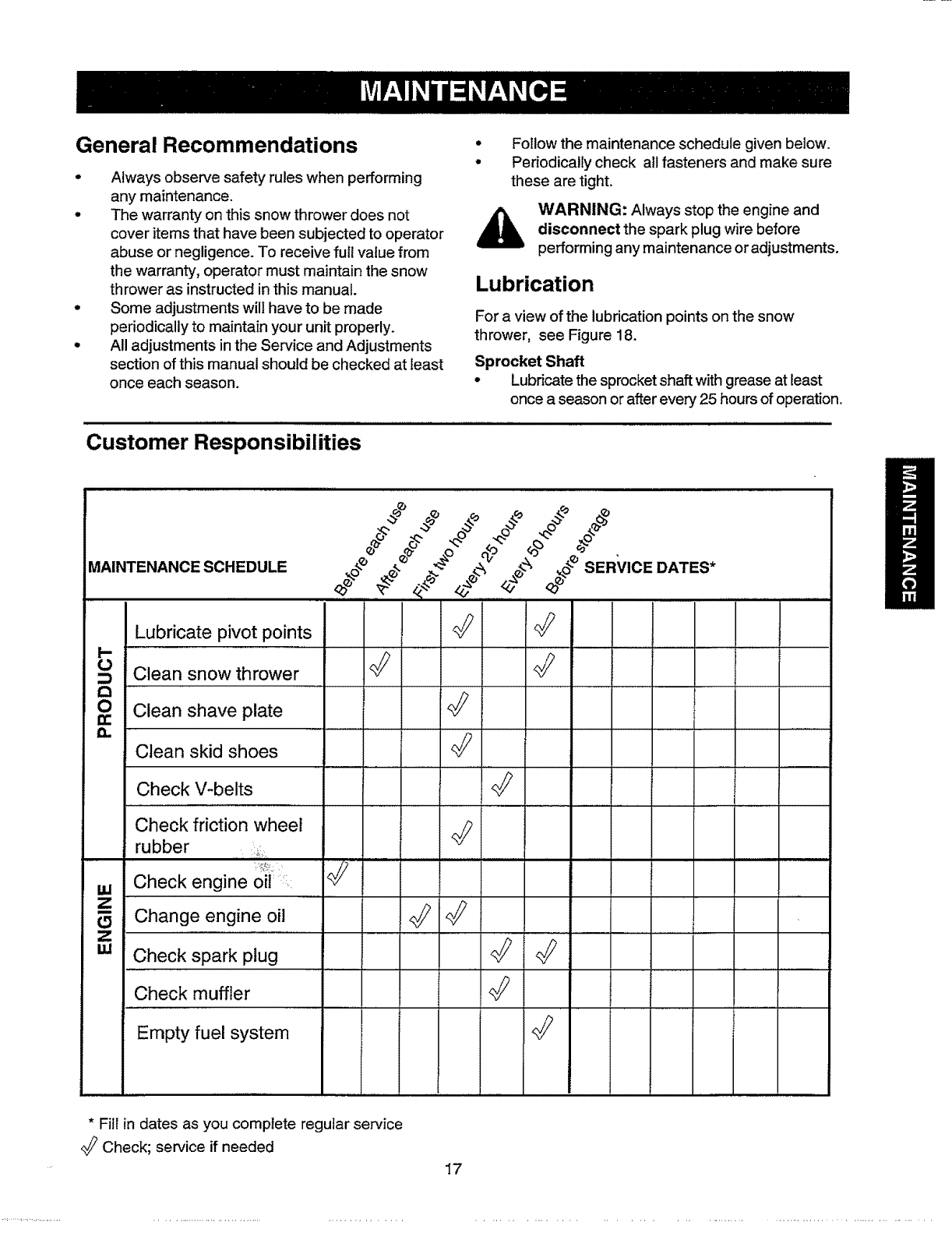 For two years from the date of purchase, when this Craftsman Snow Thrower is maintained, lubricated and tuned