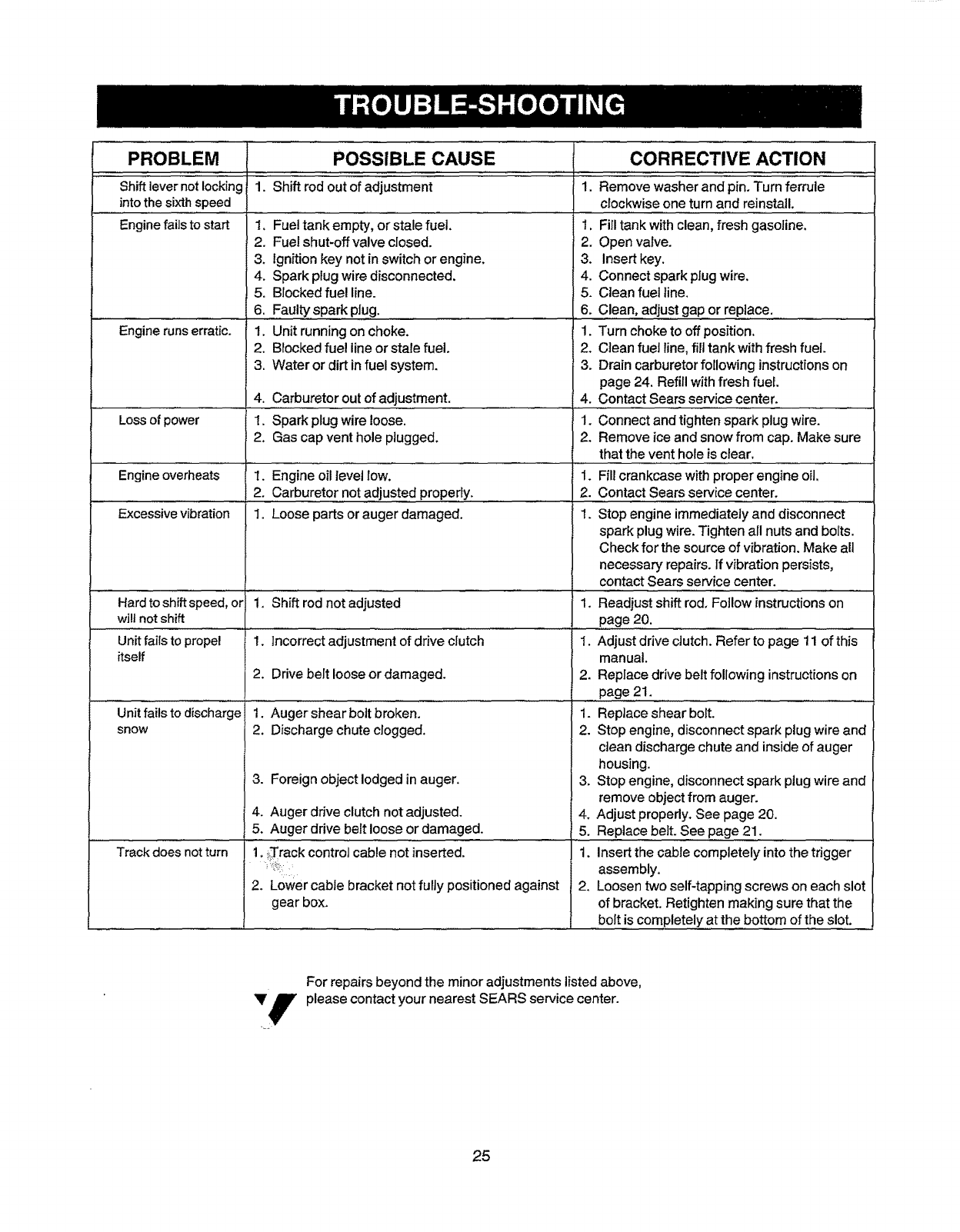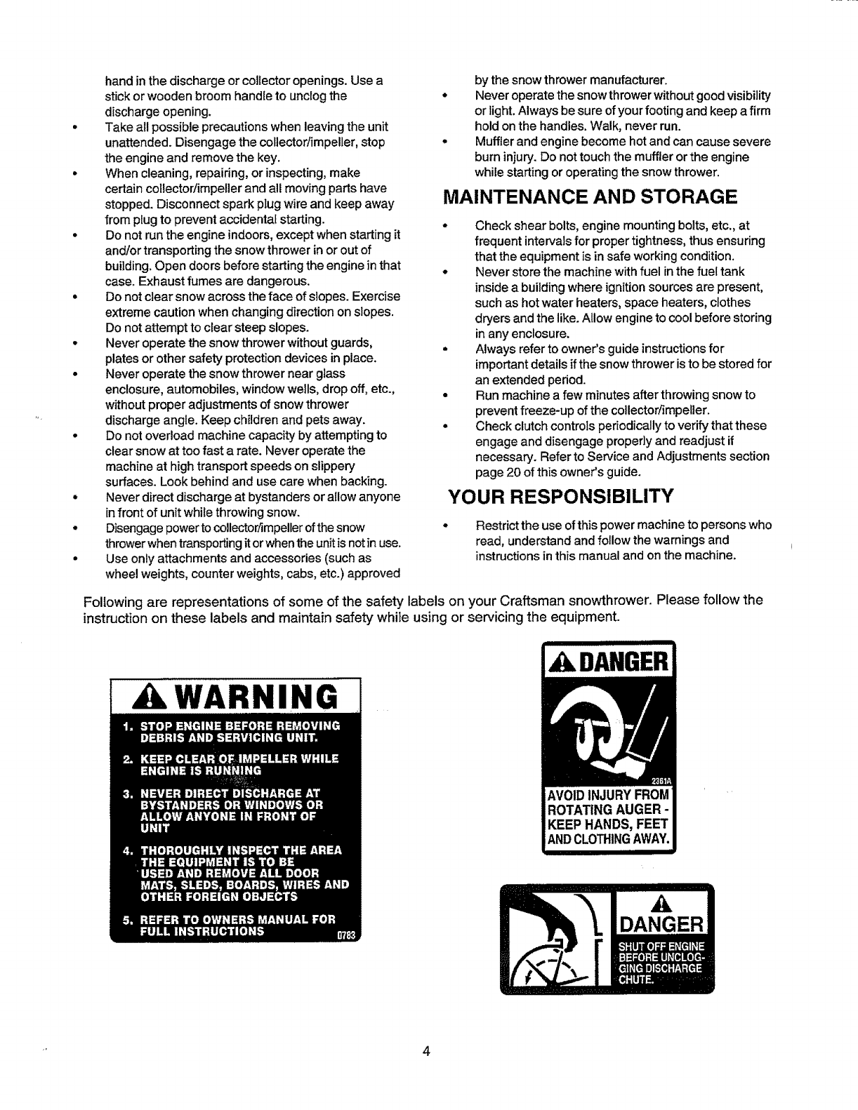 WARRANTY SERVICE IS AVAILABLE BY RETU RNING THE CRAFTSMAN SNOWTH ROWER TO THE NEAREST