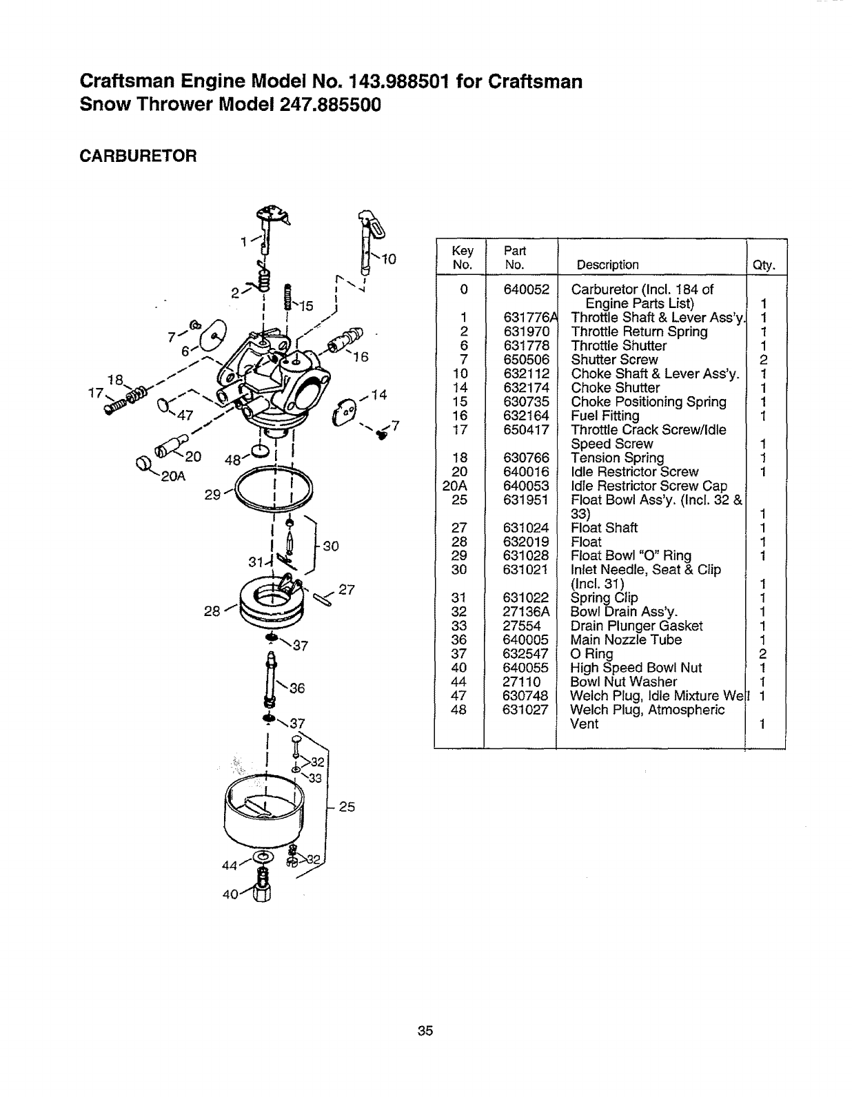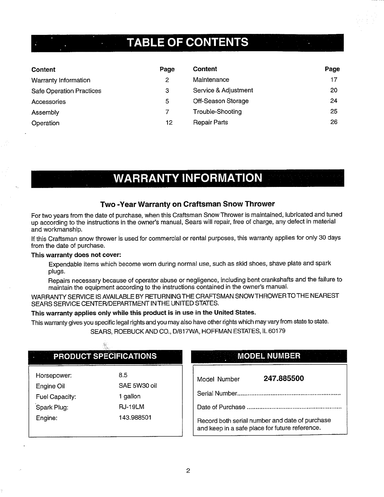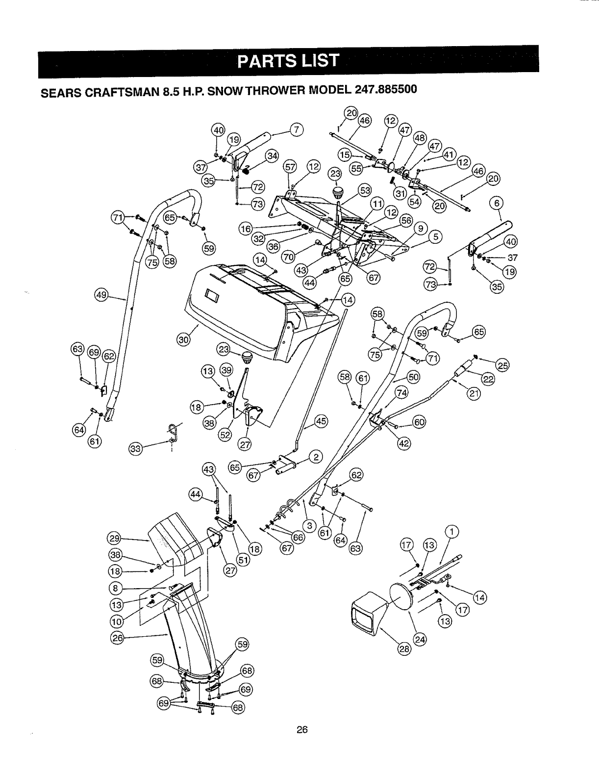User Manual: Craftsman 247885500 247885500 CRAFTSMAN SNOW THROWER - Manuals and Guides View the owners manual for your CRAFTSMAN SNOW THROWER #247885500. Home:Lawn & Garden Parts:Craftsman Parts:Craftsman SNOW THROWER Manual