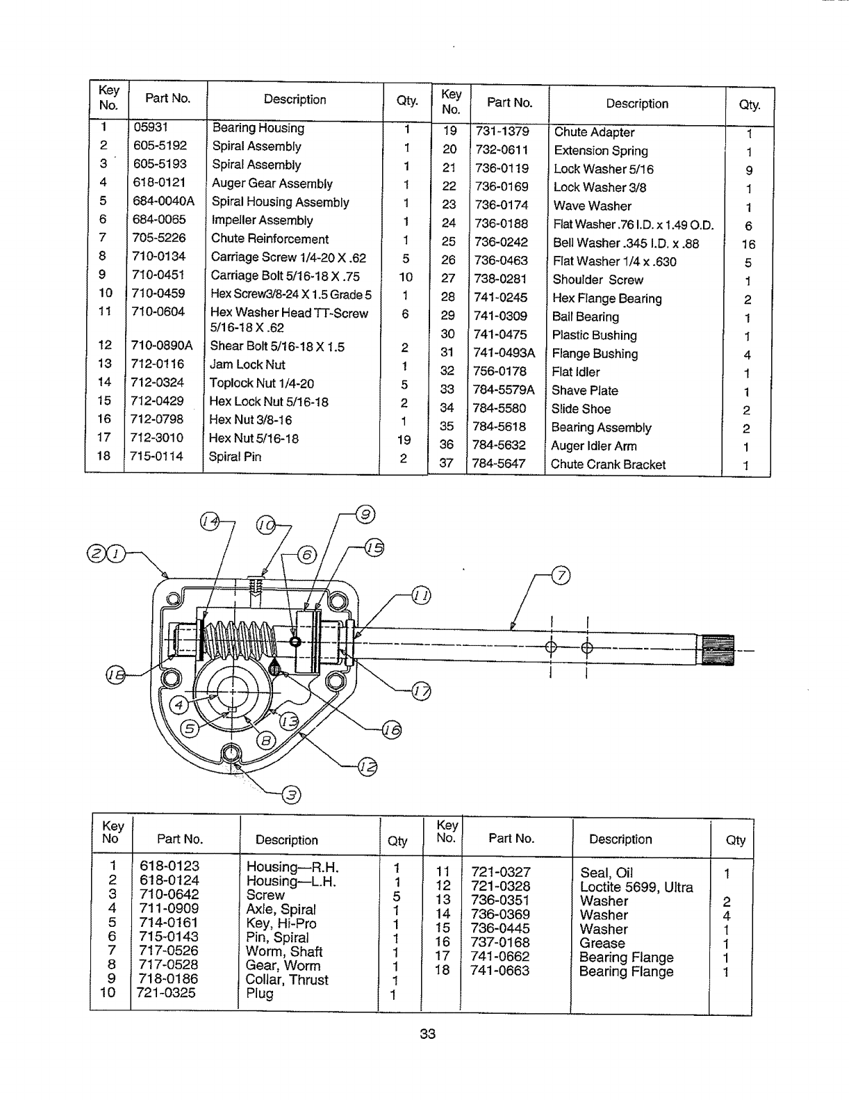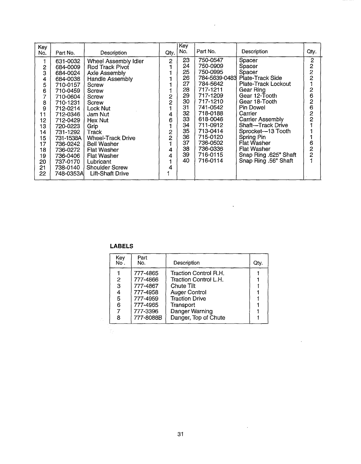 Expendable items which become worn during normal use, such as skid shoes, shave plate and spark