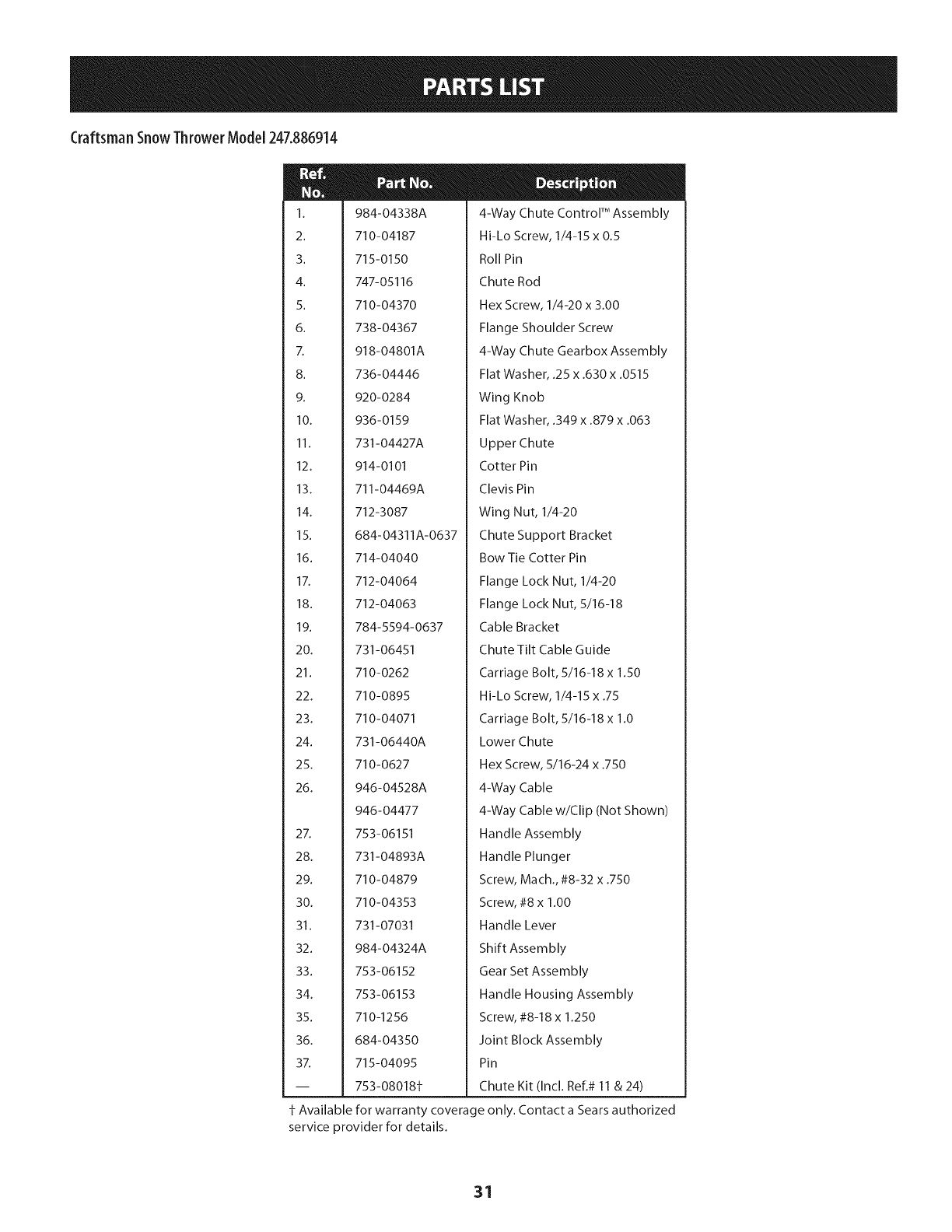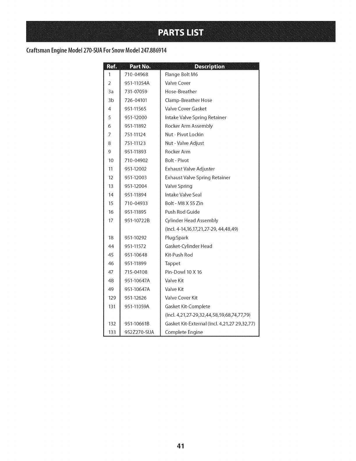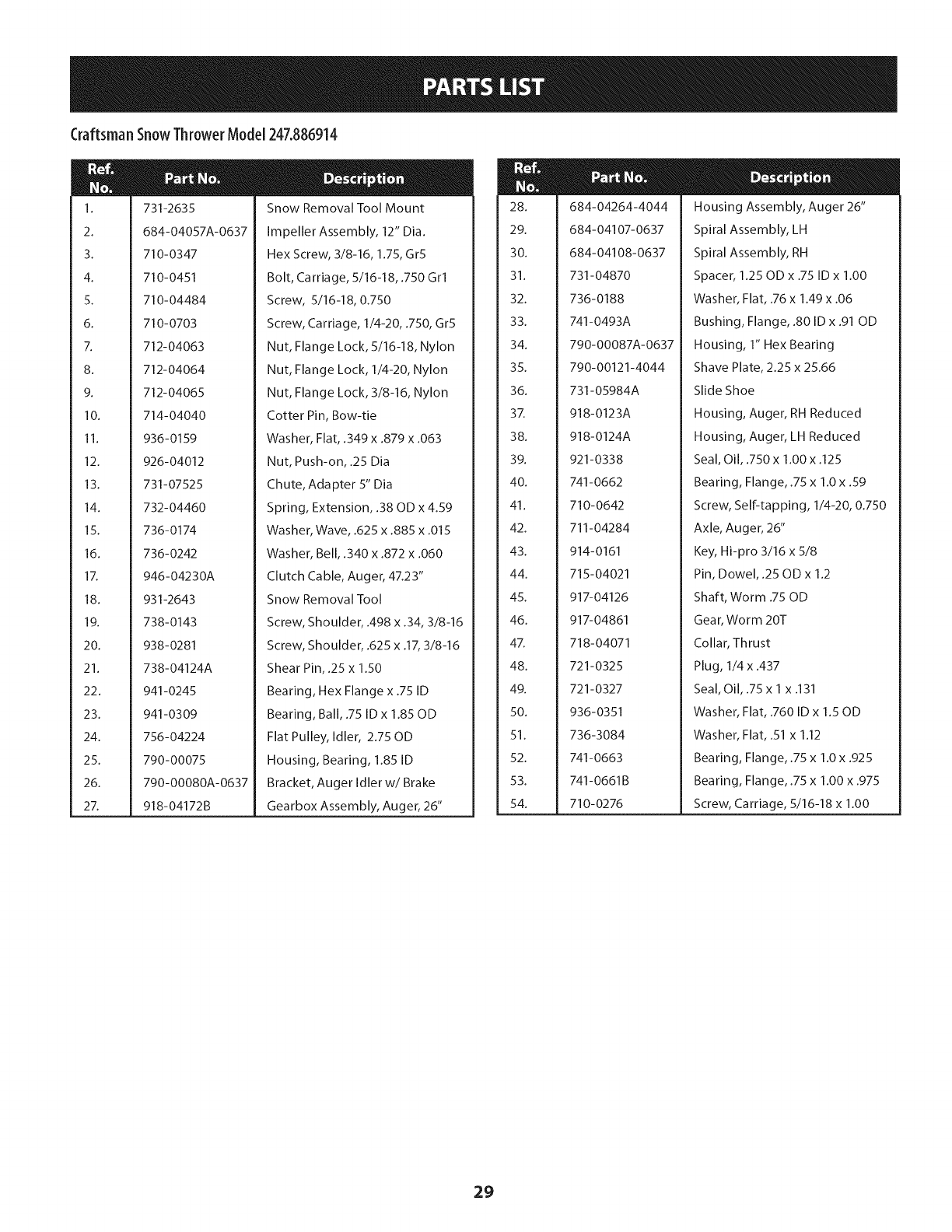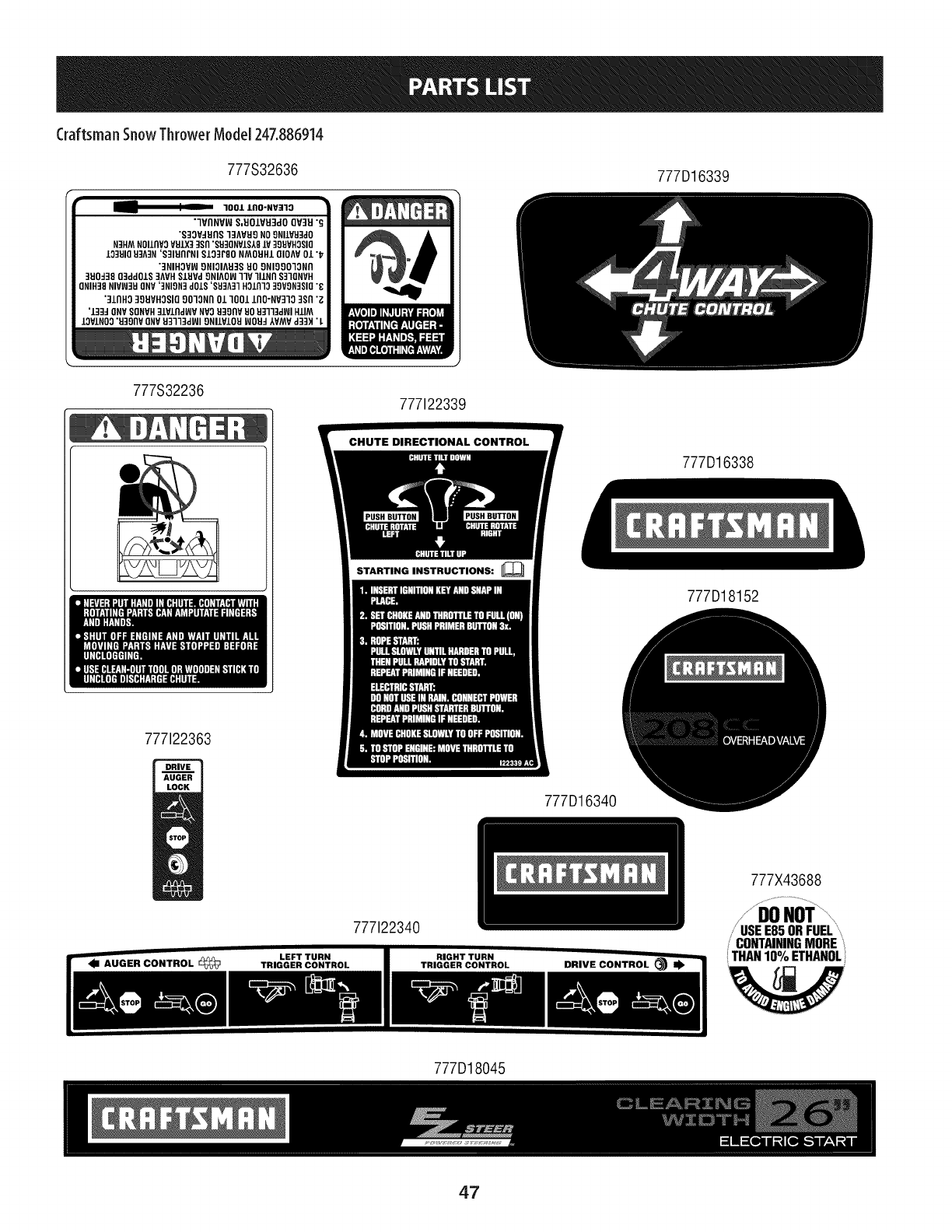 User Manual: Craftsman 247886914 247886914 CRAFTSMAN SNOWTHROWER - Manuals and Guides View the owners manual for your CRAFTSMAN SNOWTHROWER #247886914. Home:Lawn & Garden Parts:Craftsman Parts:Craftsman SNOWTHROWER Manual