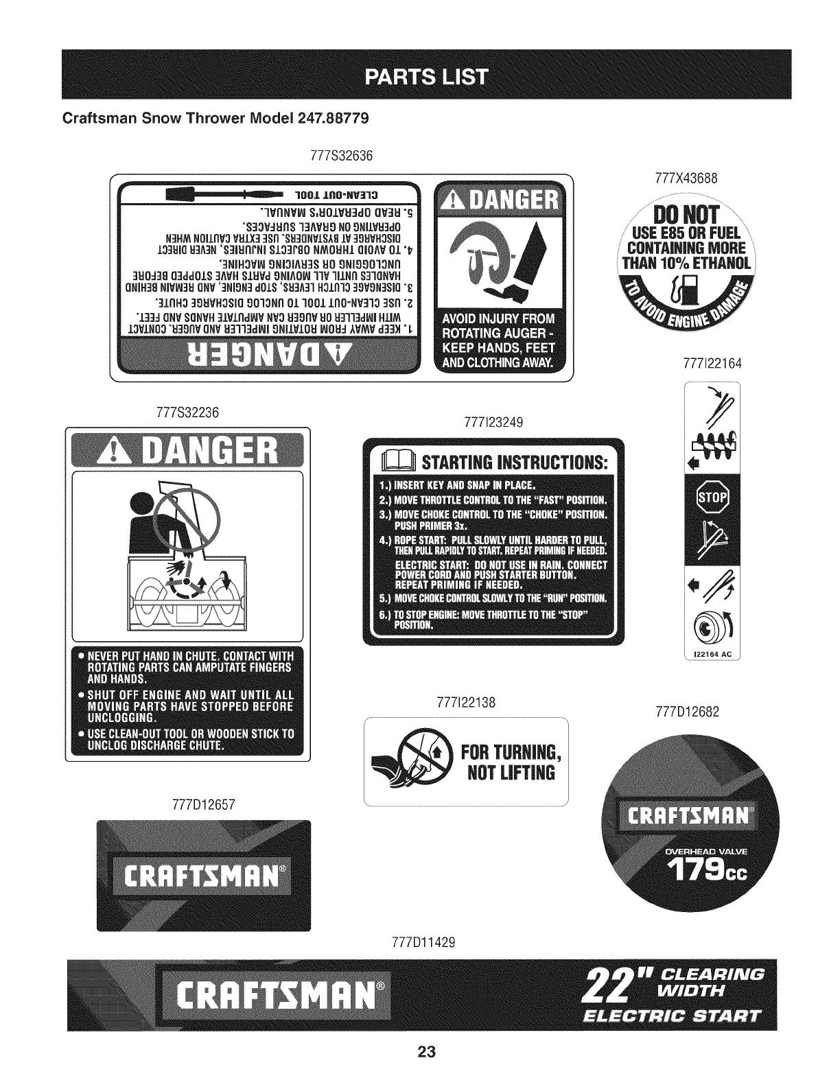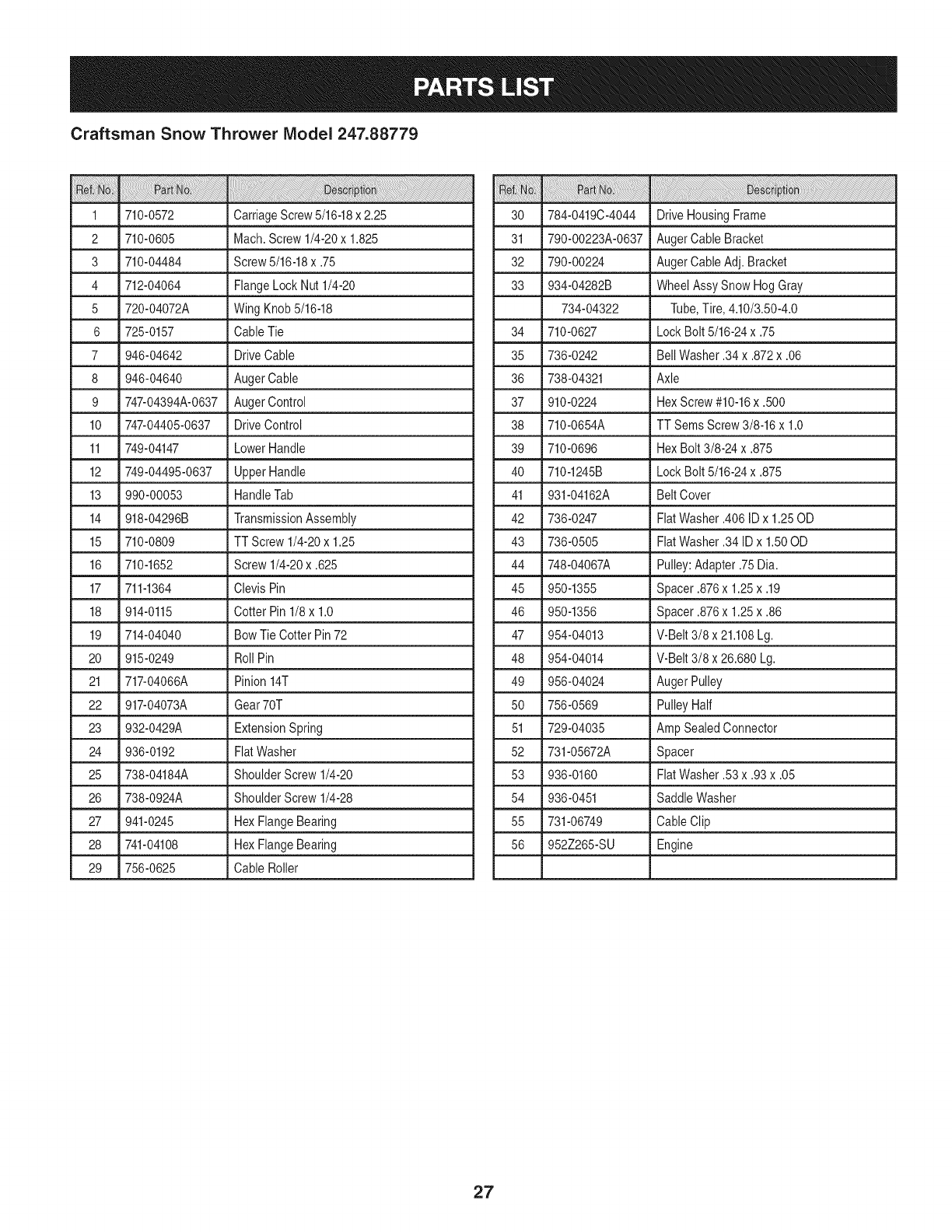 User Manual: Craftsman 247887790 247887790 CRAFTSMAN SNOW THROWER - Manuals and Guides View the owners manual for your CRAFTSMAN SNOW THROWER #247887790. Home:Lawn & Garden Parts:Craftsman Parts:Craftsman SNOW THROWER Manual