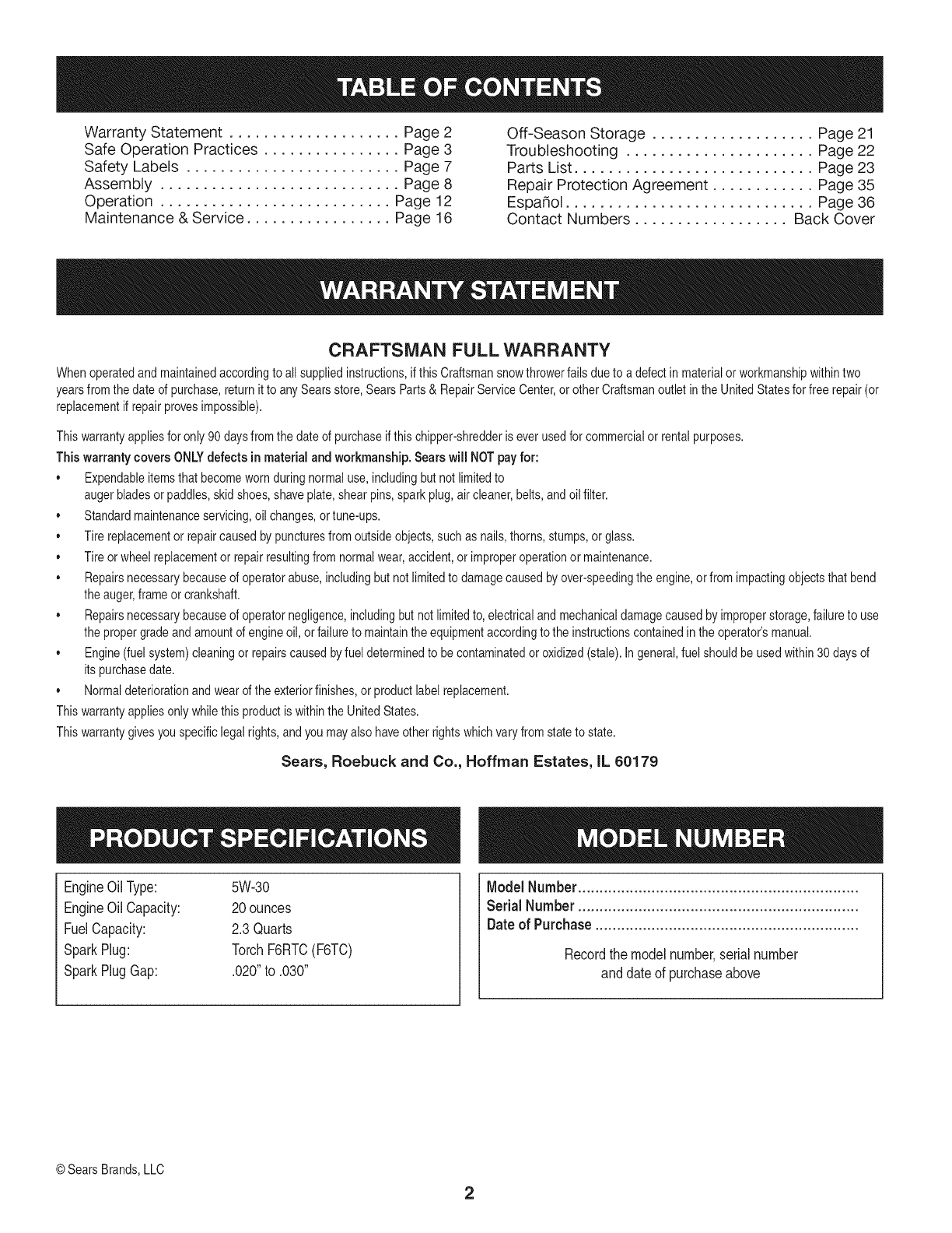Whenoperatedand maintainedaccordingto allsuppliedinstructions,ifthis Craftsmansnowthrowerfailsdueto a defectin materialorworkmanshipwithintwo