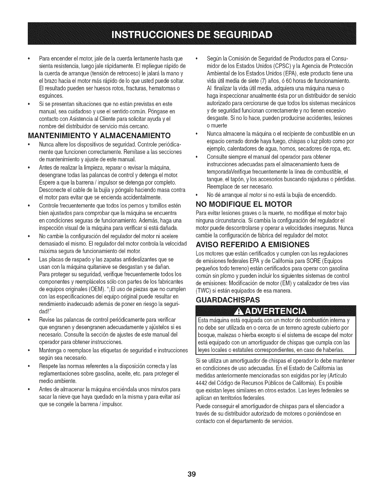 el motor cumpie con ias reglas de emisi6n, descontando el mantenimiento adecuado del mismo segQn las instrucciones de oper-