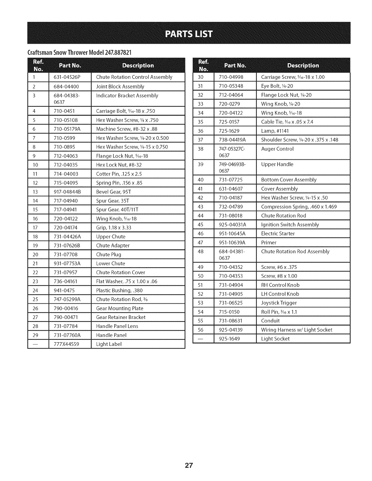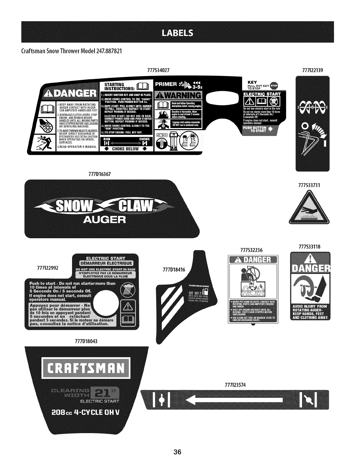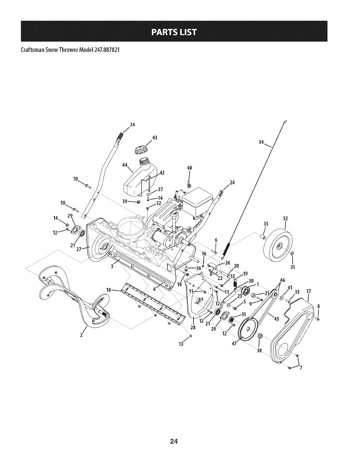 User Manual: Craftsman 247887821 247887821 CRAFTSMAN SNOW THROWER - Manuals and Guides View the owners manual for your CRAFTSMAN SNOW THROWER #247887821. Home:Lawn & Garden Parts:Craftsman Parts:Craftsman SNOW THROWER Manual