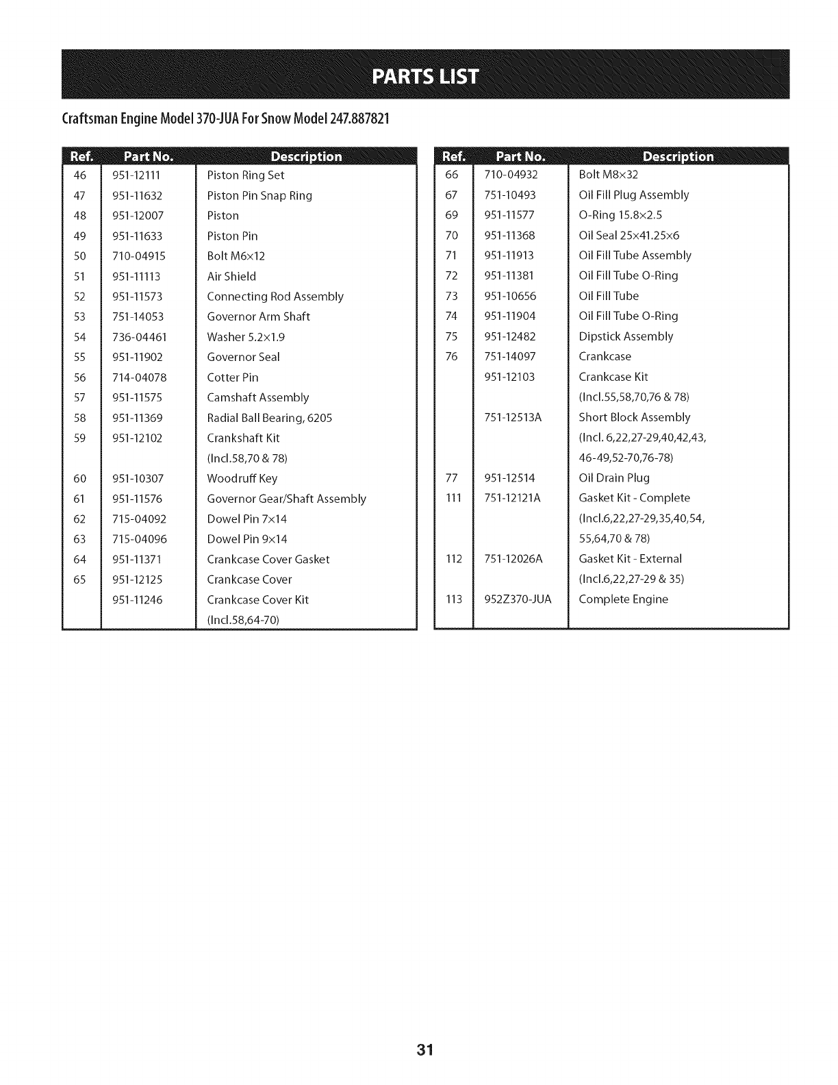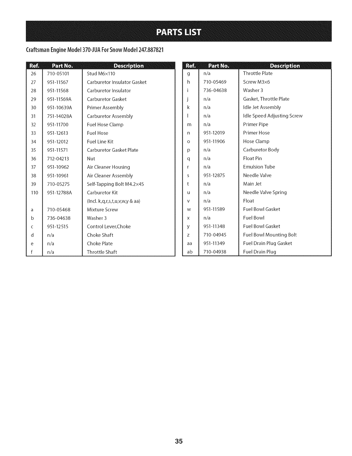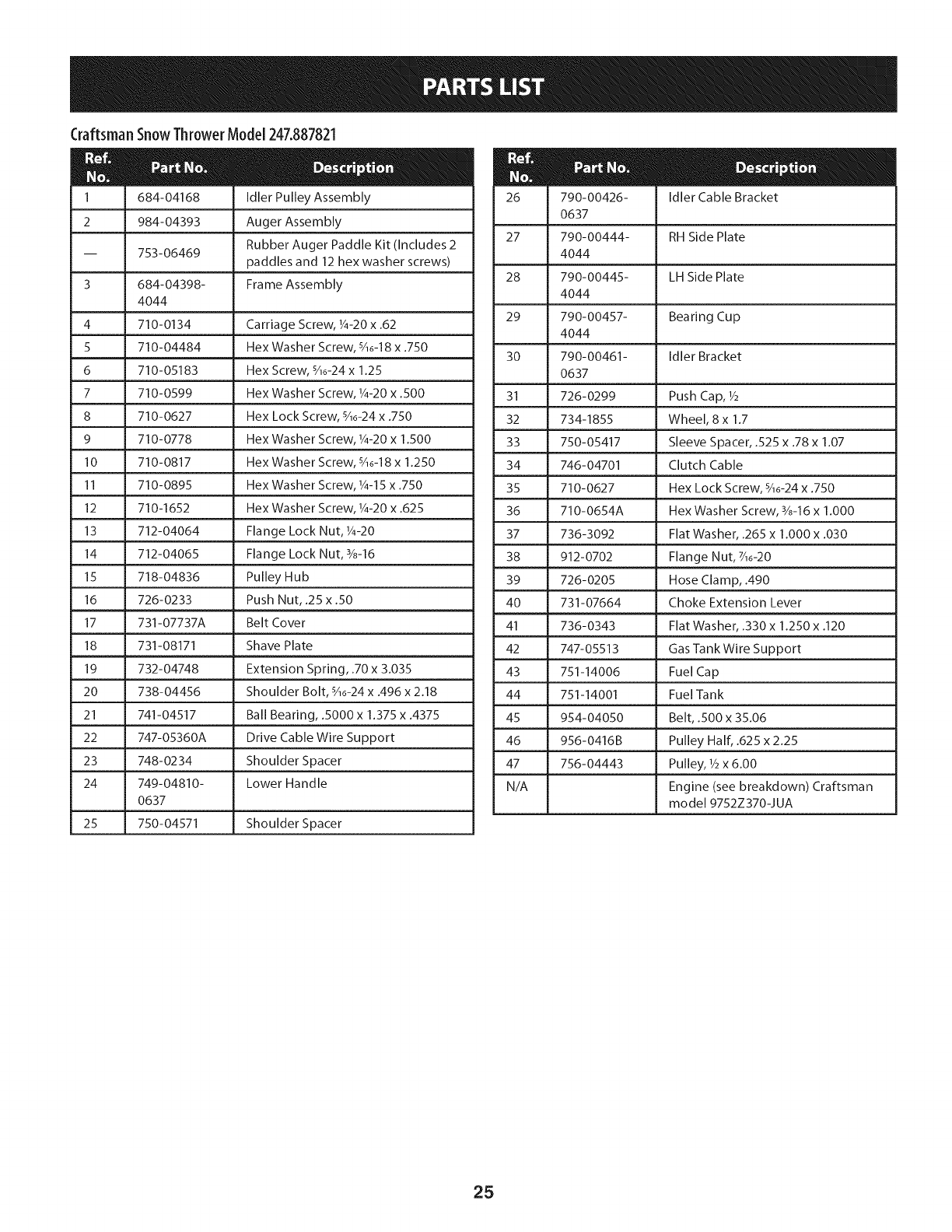 User Manual: Craftsman 247887821 247887821 CRAFTSMAN SNOW THROWER - Manuals and Guides View the owners manual for your CRAFTSMAN SNOW THROWER #247887821. Home:Lawn & Garden Parts:Craftsman Parts:Craftsman SNOW THROWER Manual
