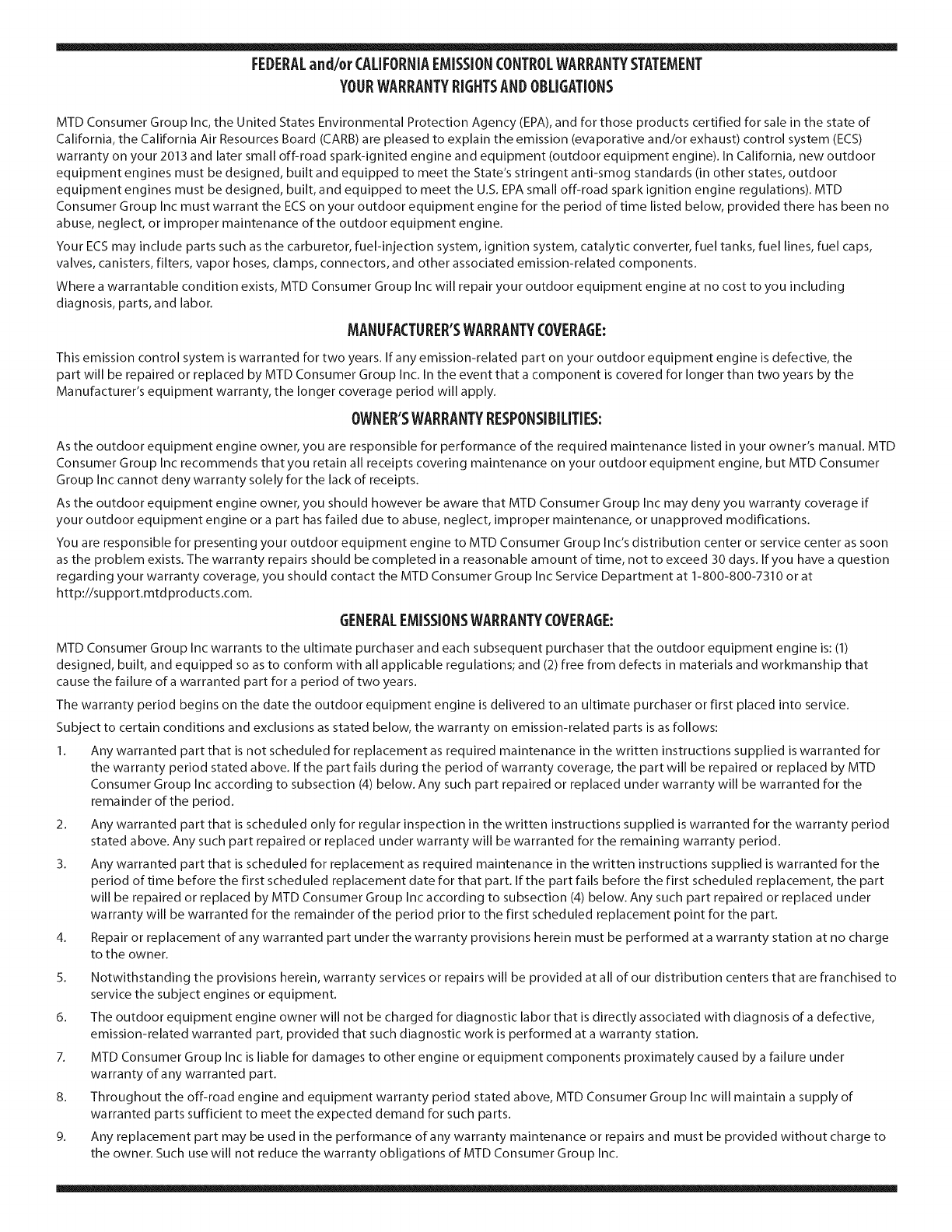 8. Durantelatotalidaddelperiododegarantiadelmotoryequipoparatodoterrenoarribamencionado,MTDConsumerGroupInc