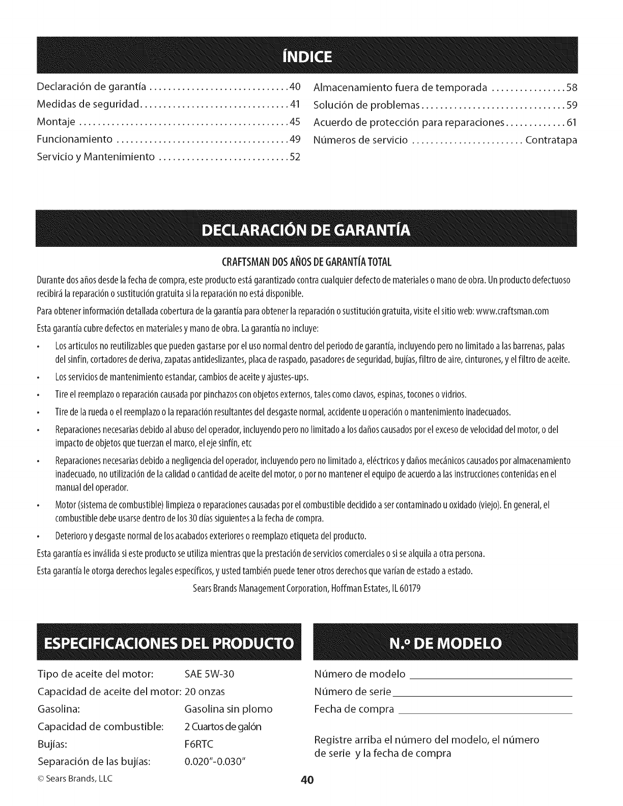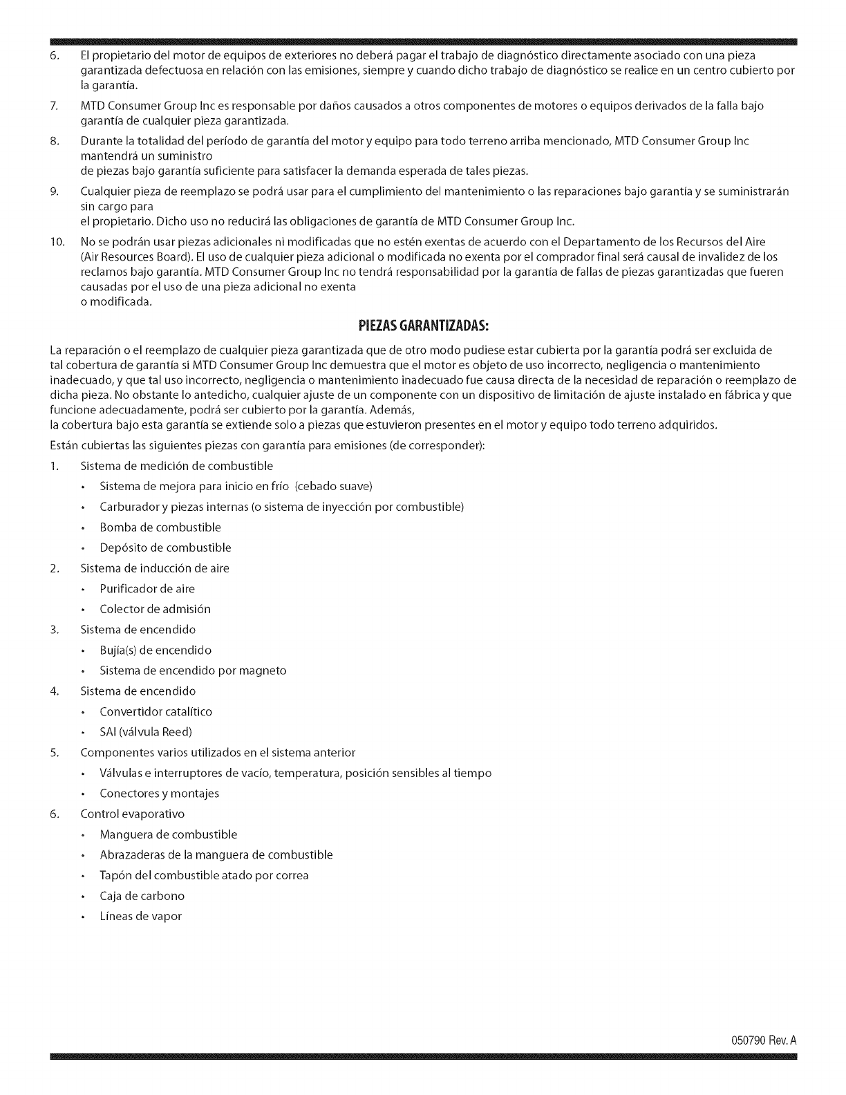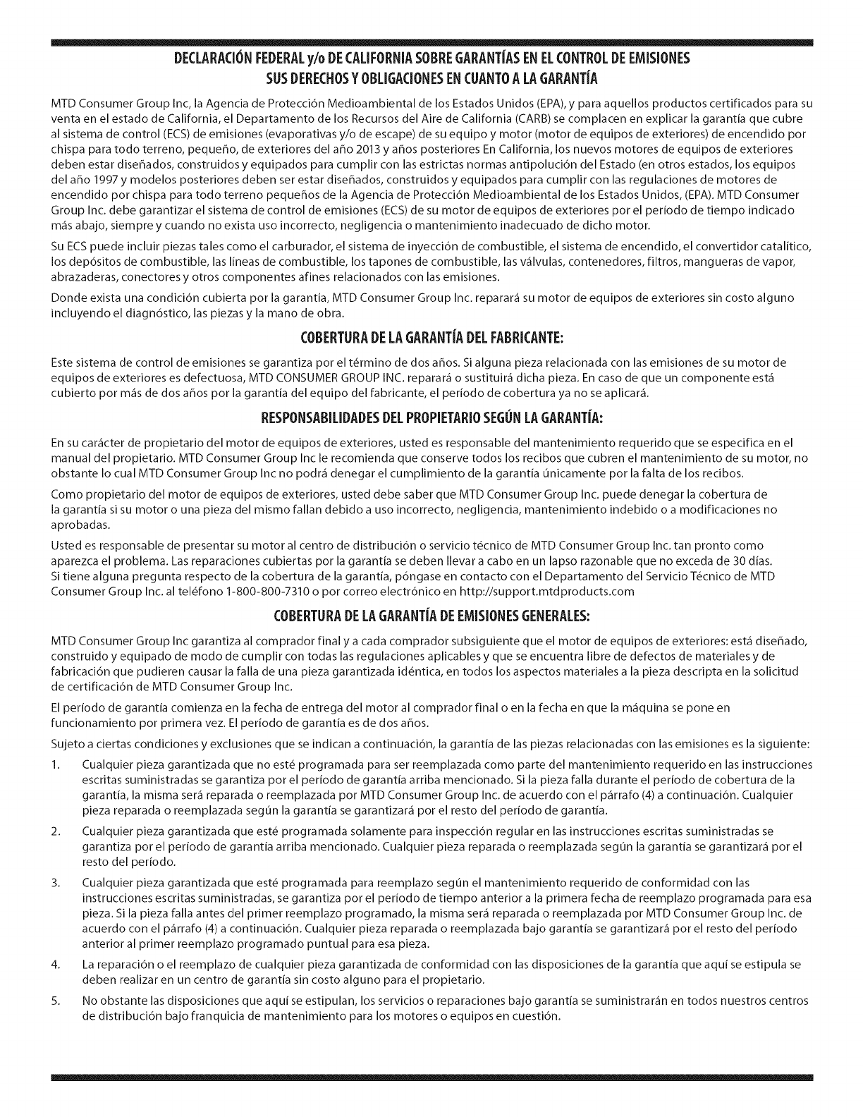 tal cobertura de garantia si MTD Consumer Group Inc demuestra que el motor es objeto de uso incorrecto, negligencia o mantenimiento