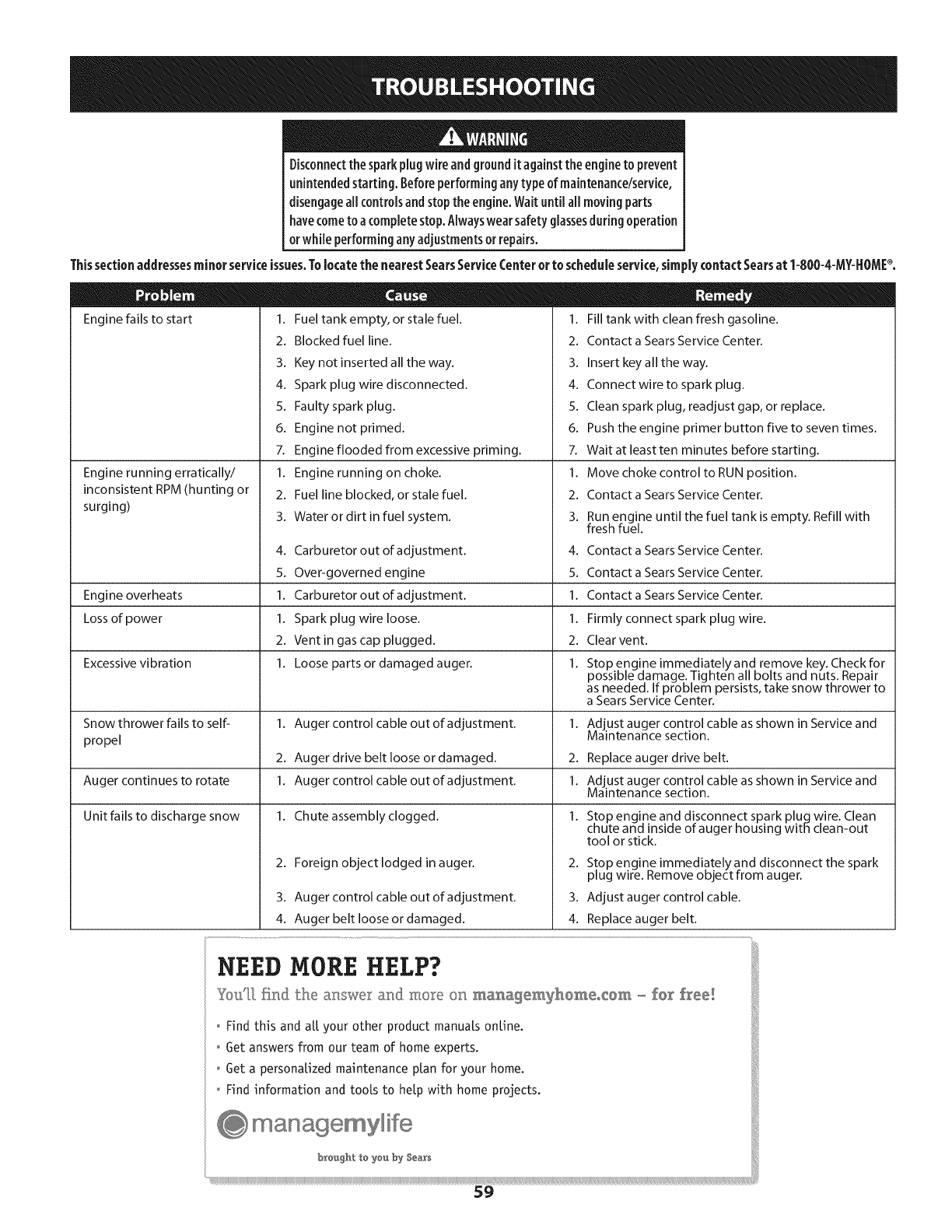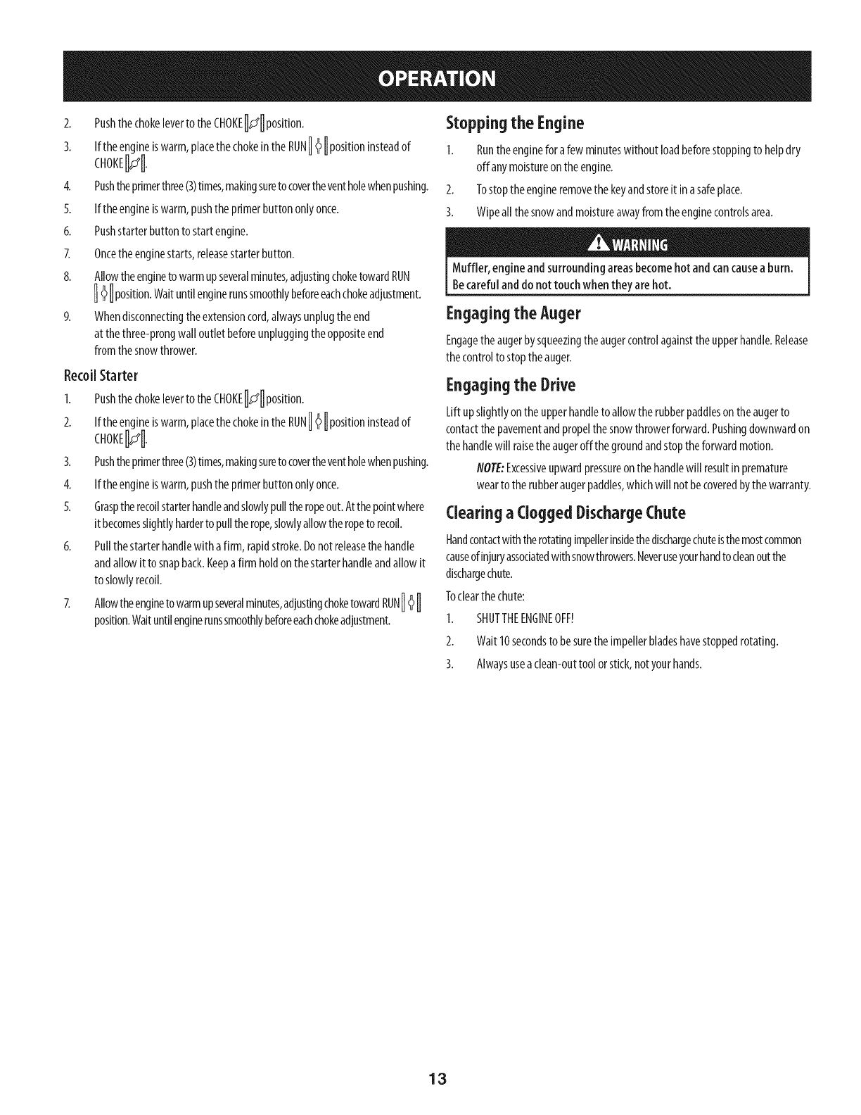 Craftsman 247887821 User Manual SNOW THROWER Manuals And Guides 1306521L
