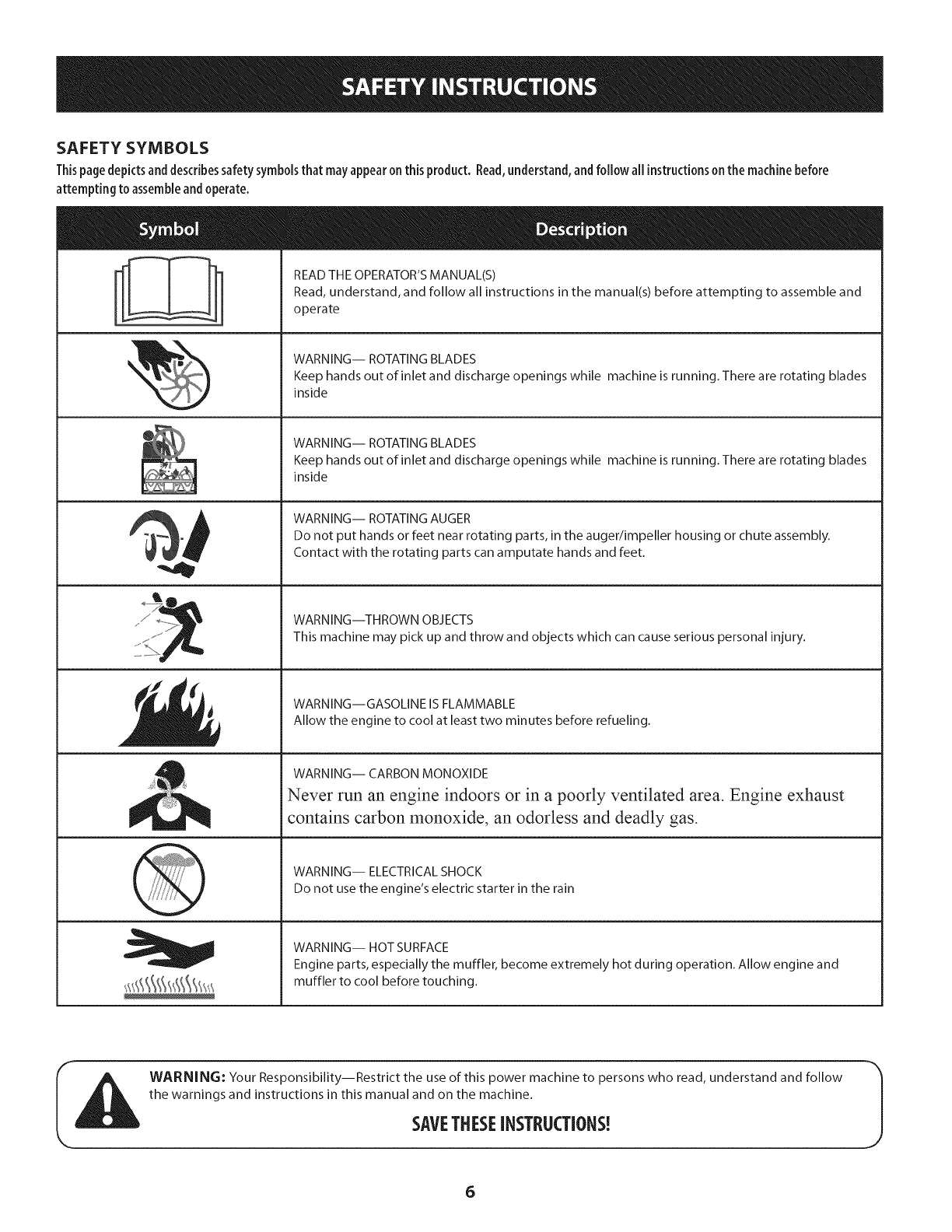 throwingdebris.Failureto observethefollowing safety instructionscould