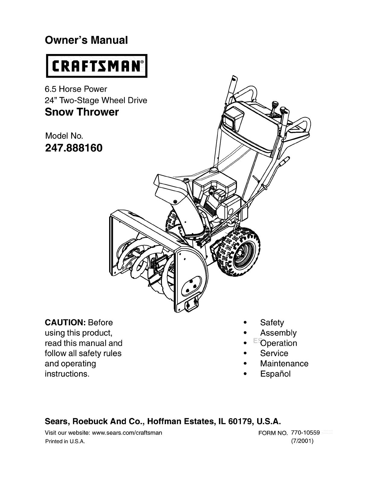 Visit our website: www.sears.com/craftsman FORM NO. 770-10559