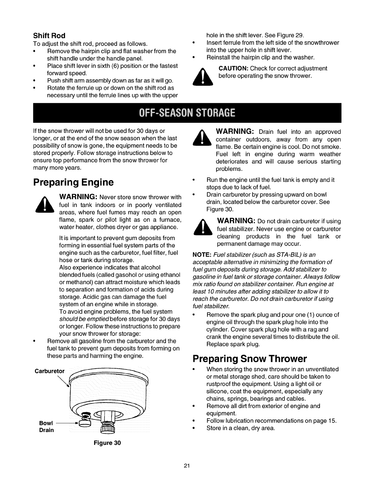Off-Season Storage ................................ 21