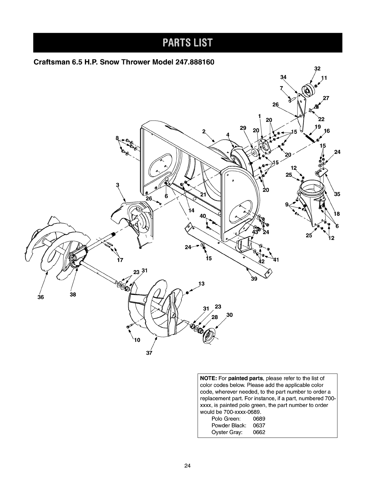 Parts List ................................................. 24