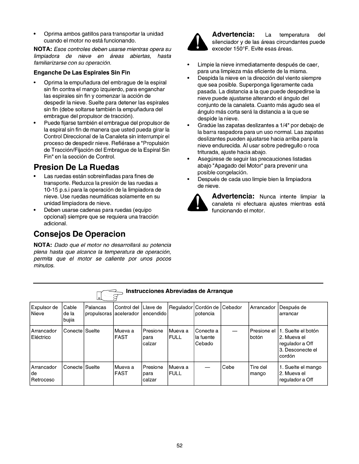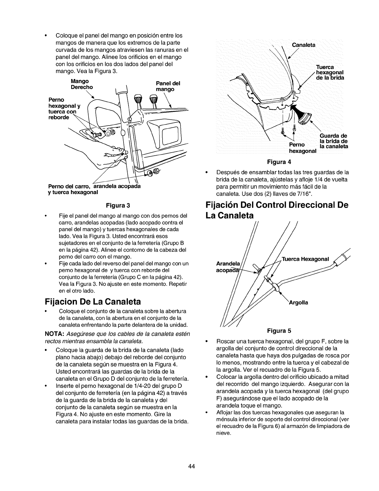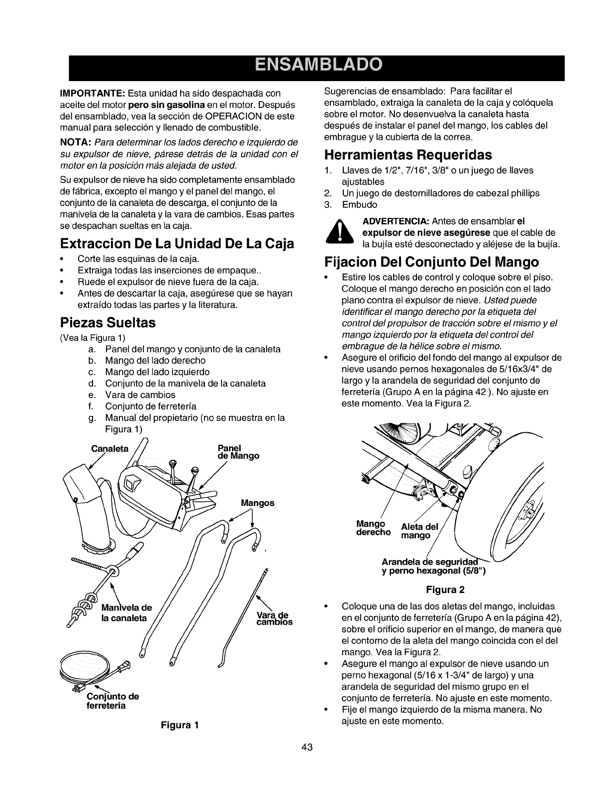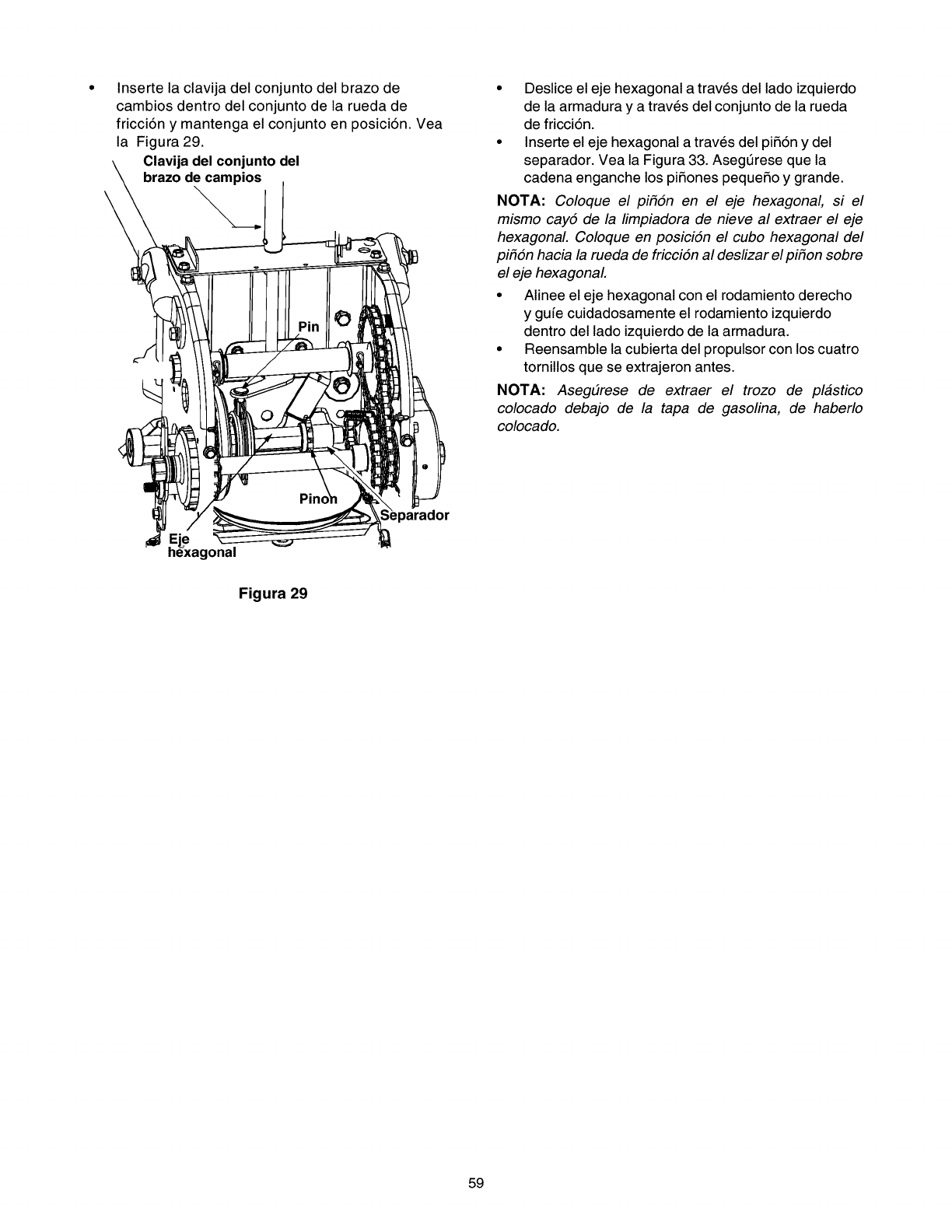 menores listados arriba. AI final de la version en ingles de este manual, se incluye una lista completa de piezas de