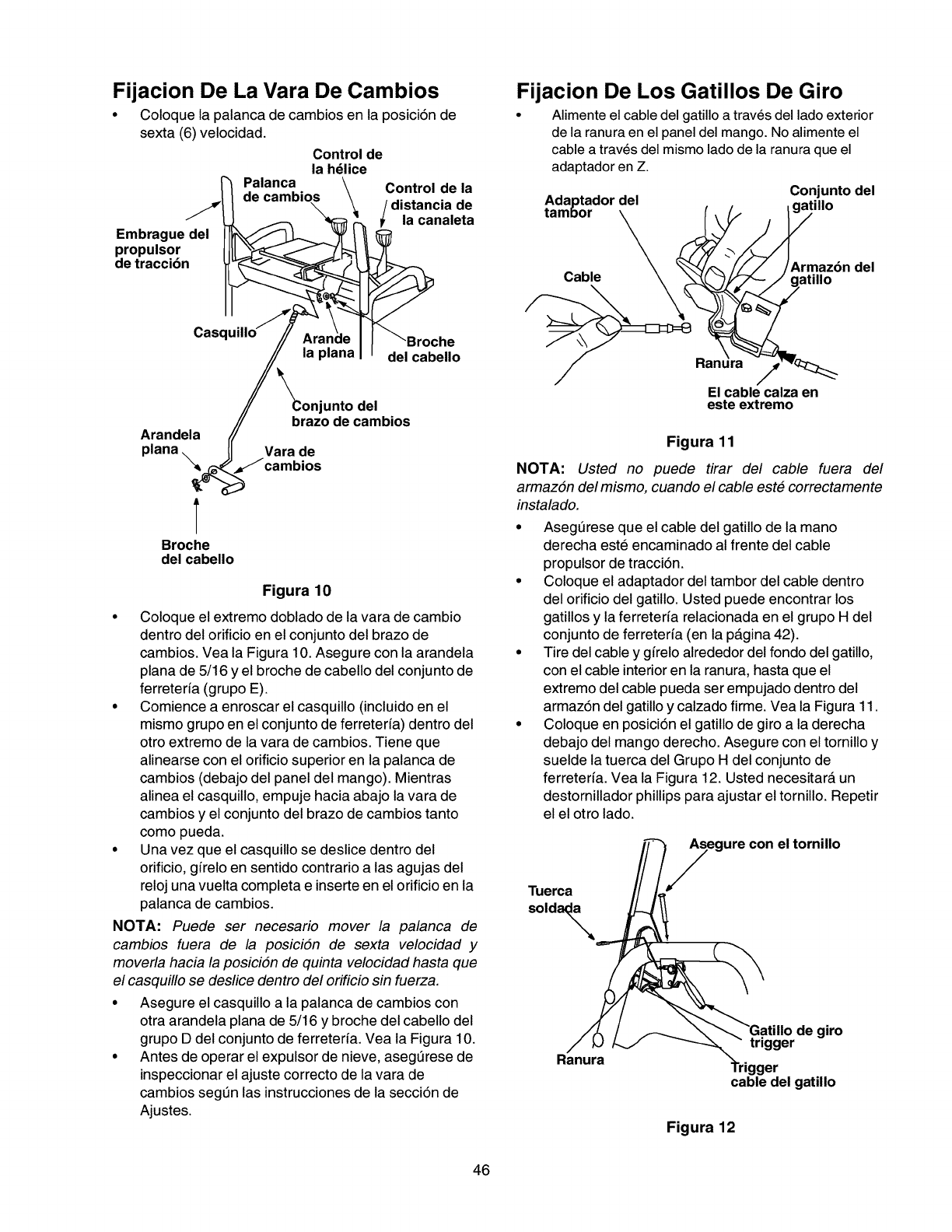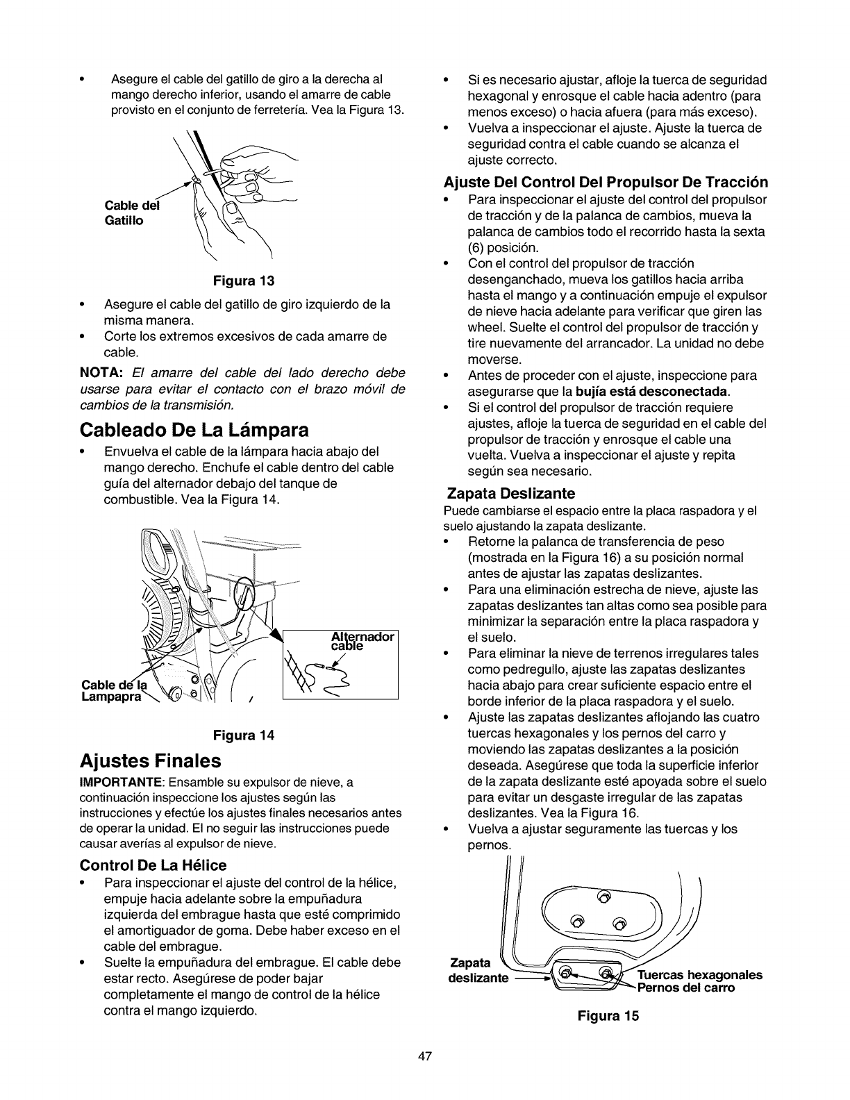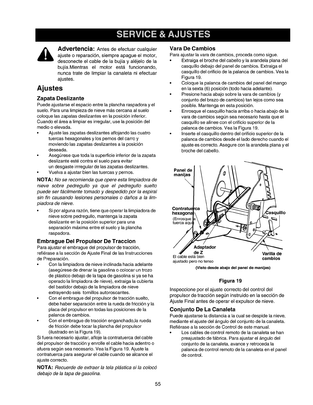 Ajuste el cable propulsor. Refierase a la secci6n de Ajustes