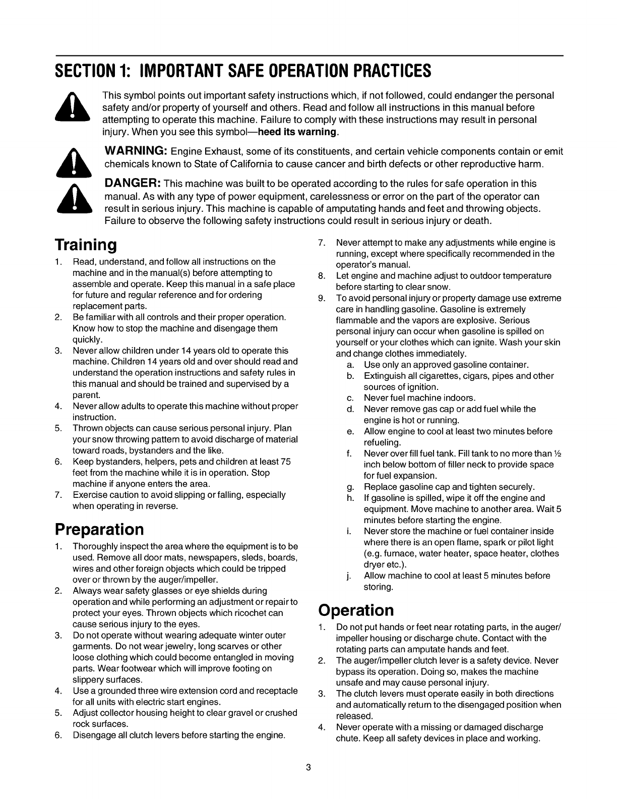 Safe Operation Practices ......................... 3