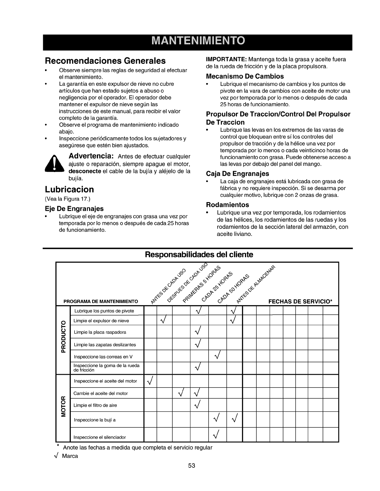 • Siga las recomendaciones de lubricaci6n en la