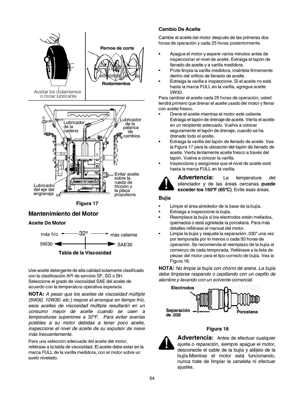 la bujia. Limpie la canaleta de descarga y el interior de la