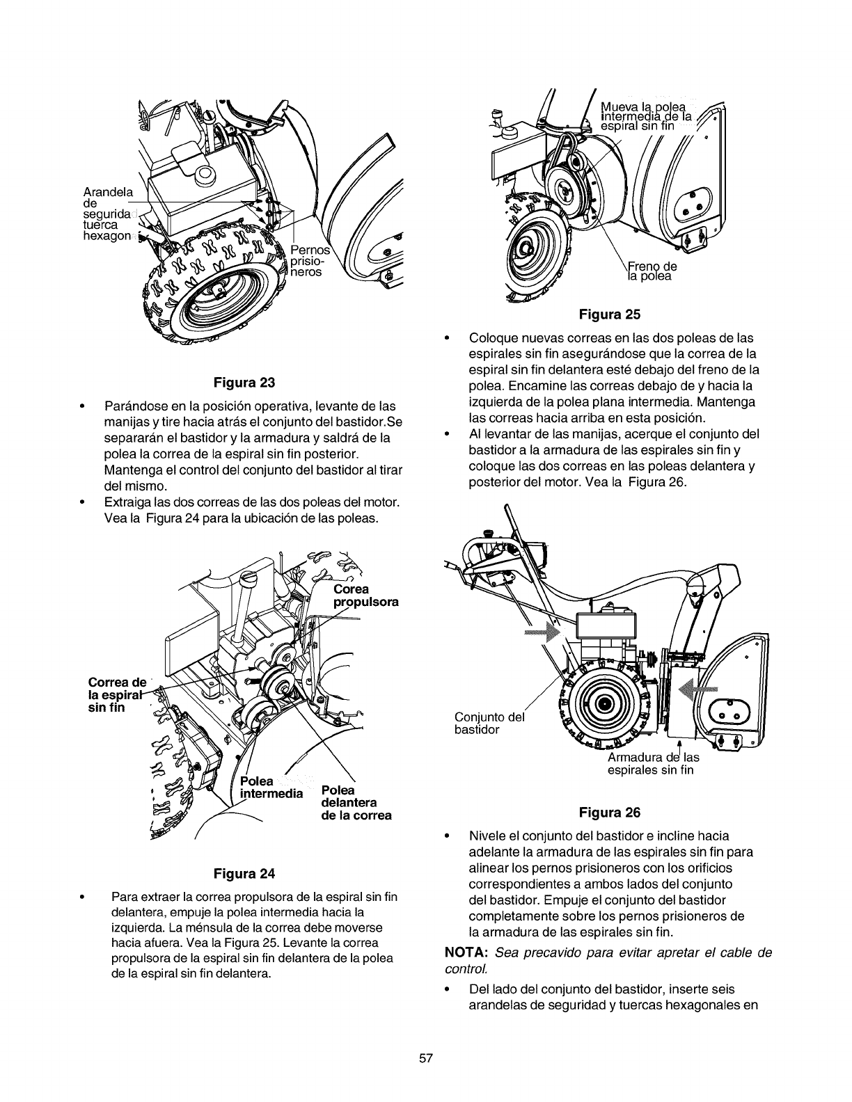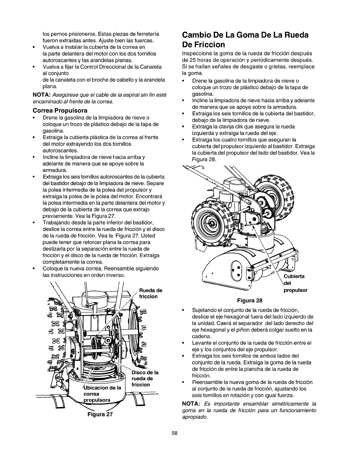 de este manual. Reemplace la correa propulsora. Refierase a