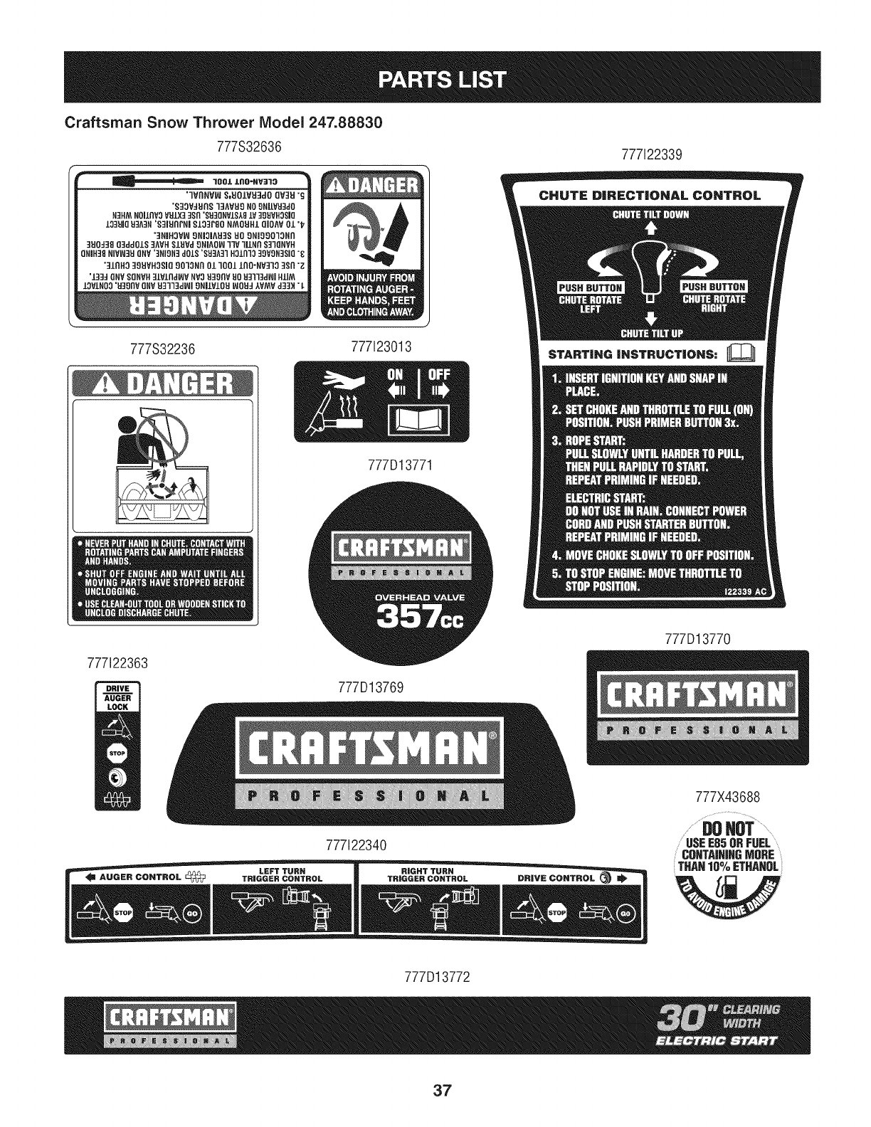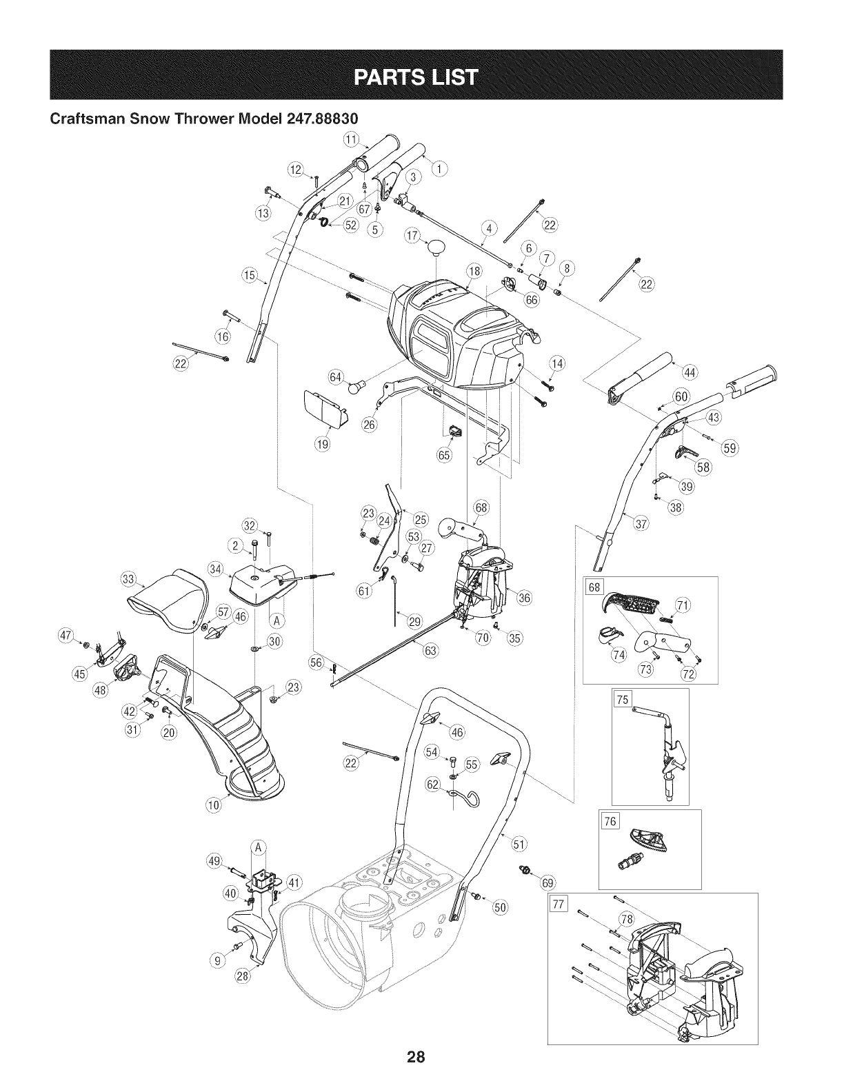 User Manual: Craftsman 247888300 247888300 CRAFTSMAN SNOW THROWER - Manuals and Guides View the owners manual for your CRAFTSMAN SNOW THROWER #247888300. Home:Lawn & Garden Parts:Craftsman Parts:Craftsman SNOW THROWER Manual