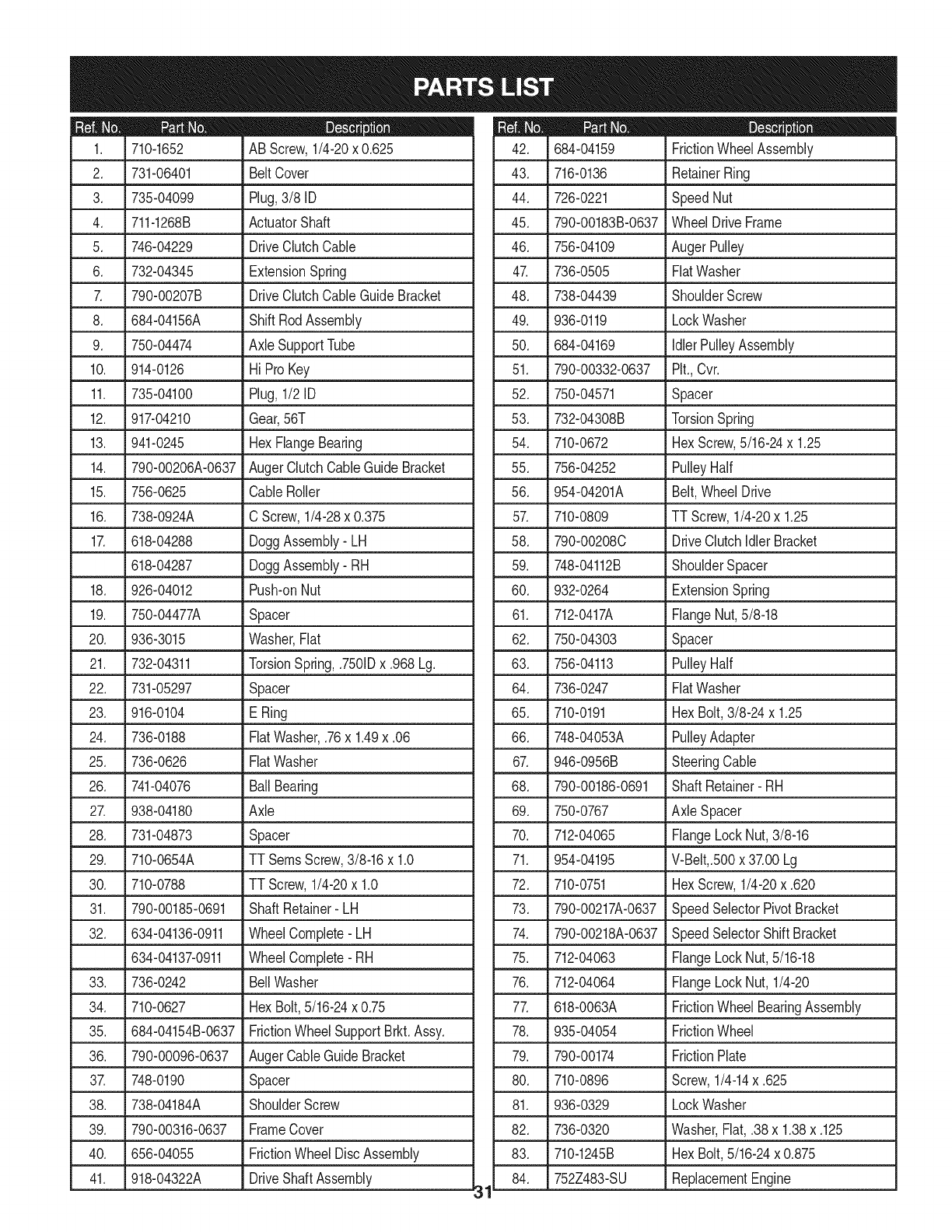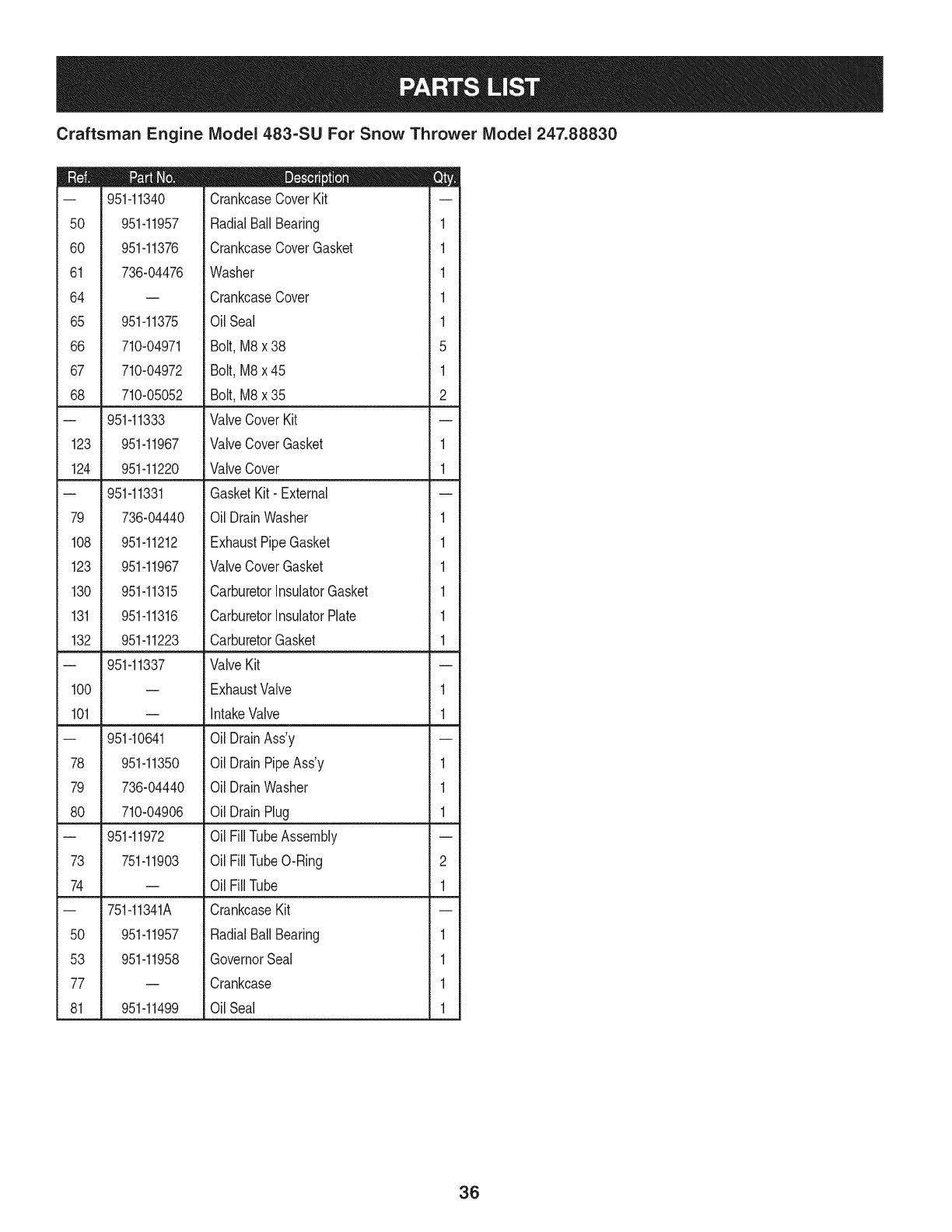PartsList......................... Pages26-36