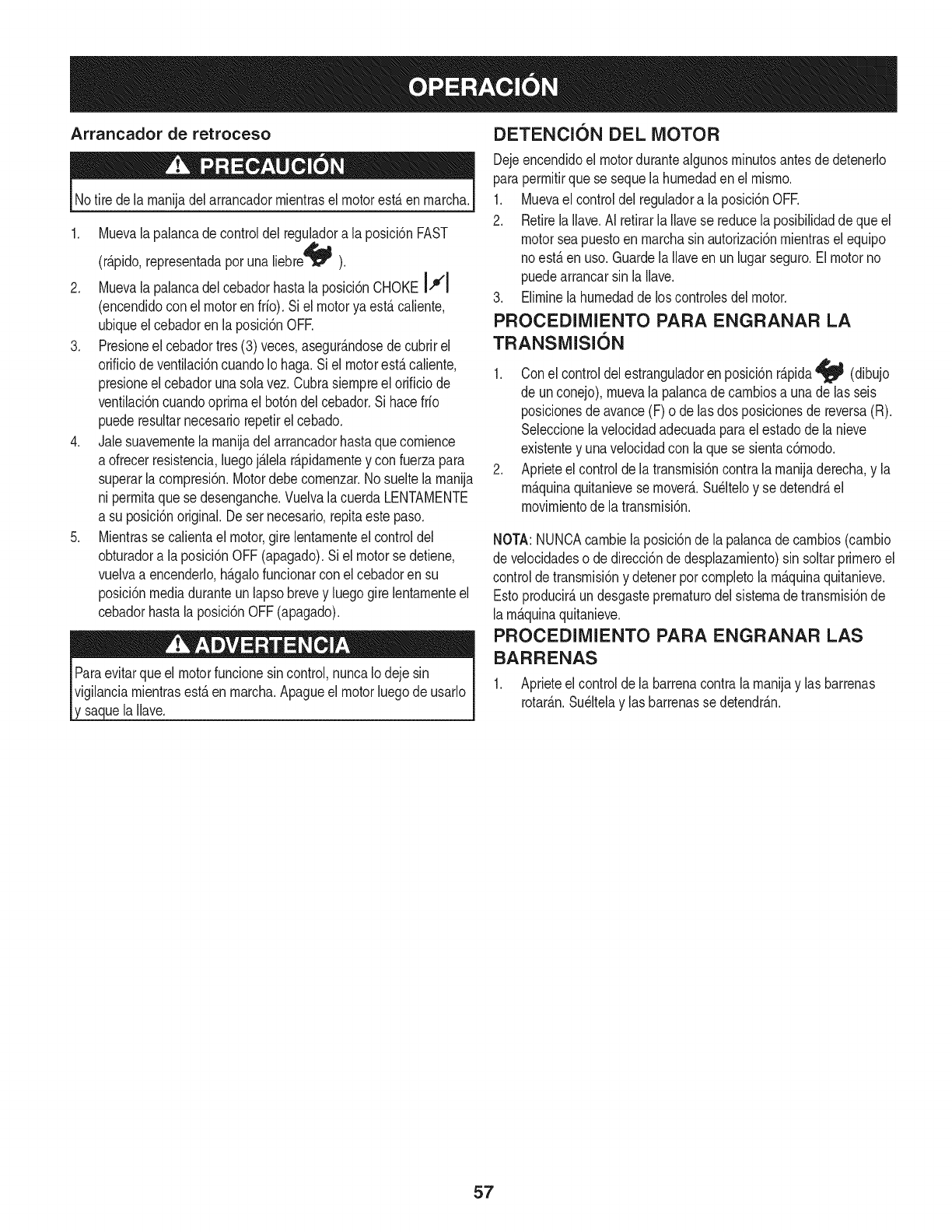 Repairsnecessarybecauseof operatorabuse,includingbutnot limitedto damagecausedby over-speedingthe engine,or fromimpacting