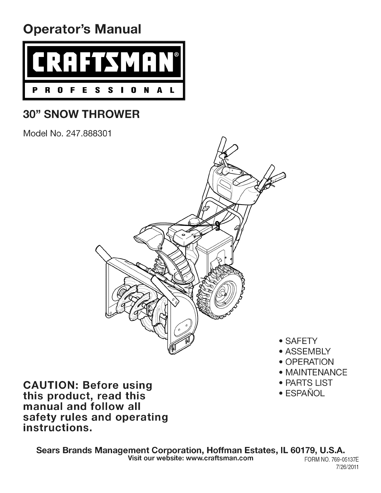 Visit our website: www.craftsman.com FORM1/O.769-05137E