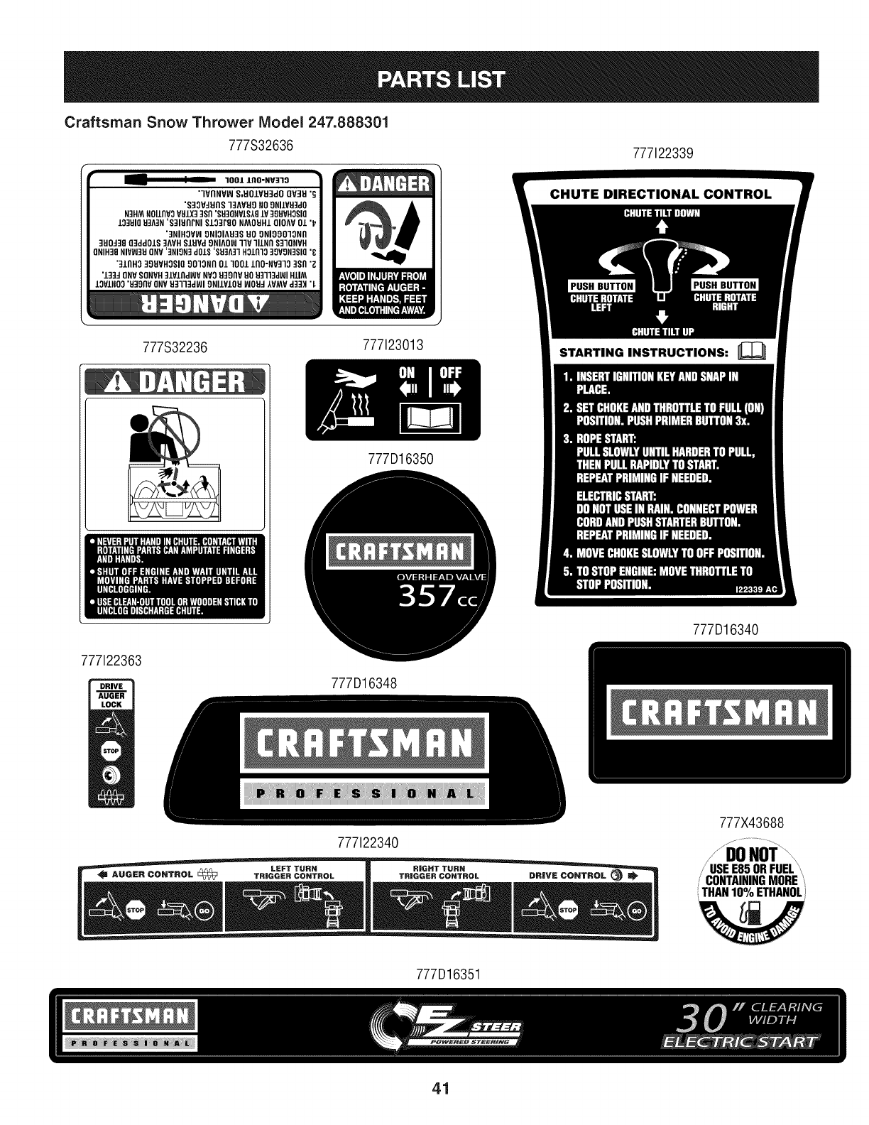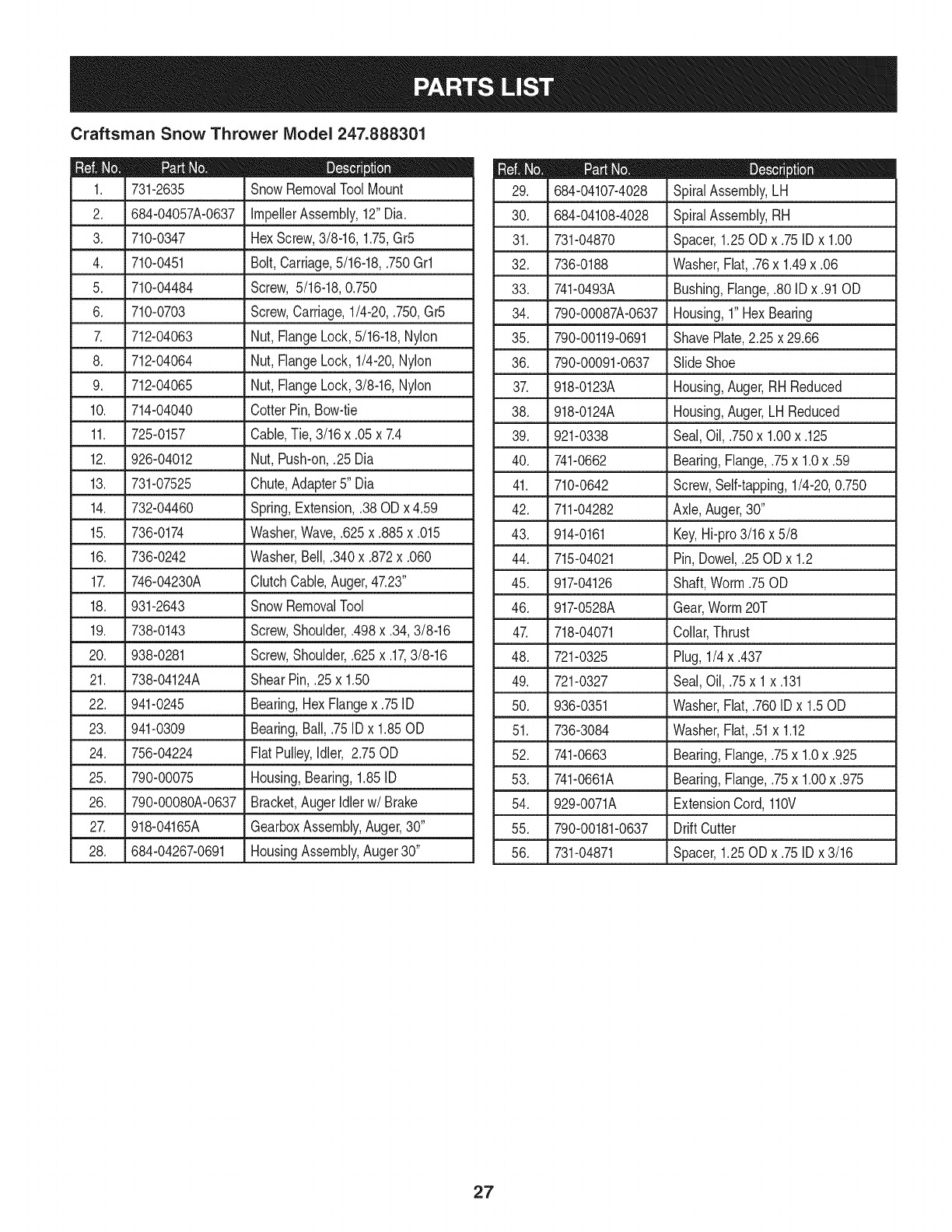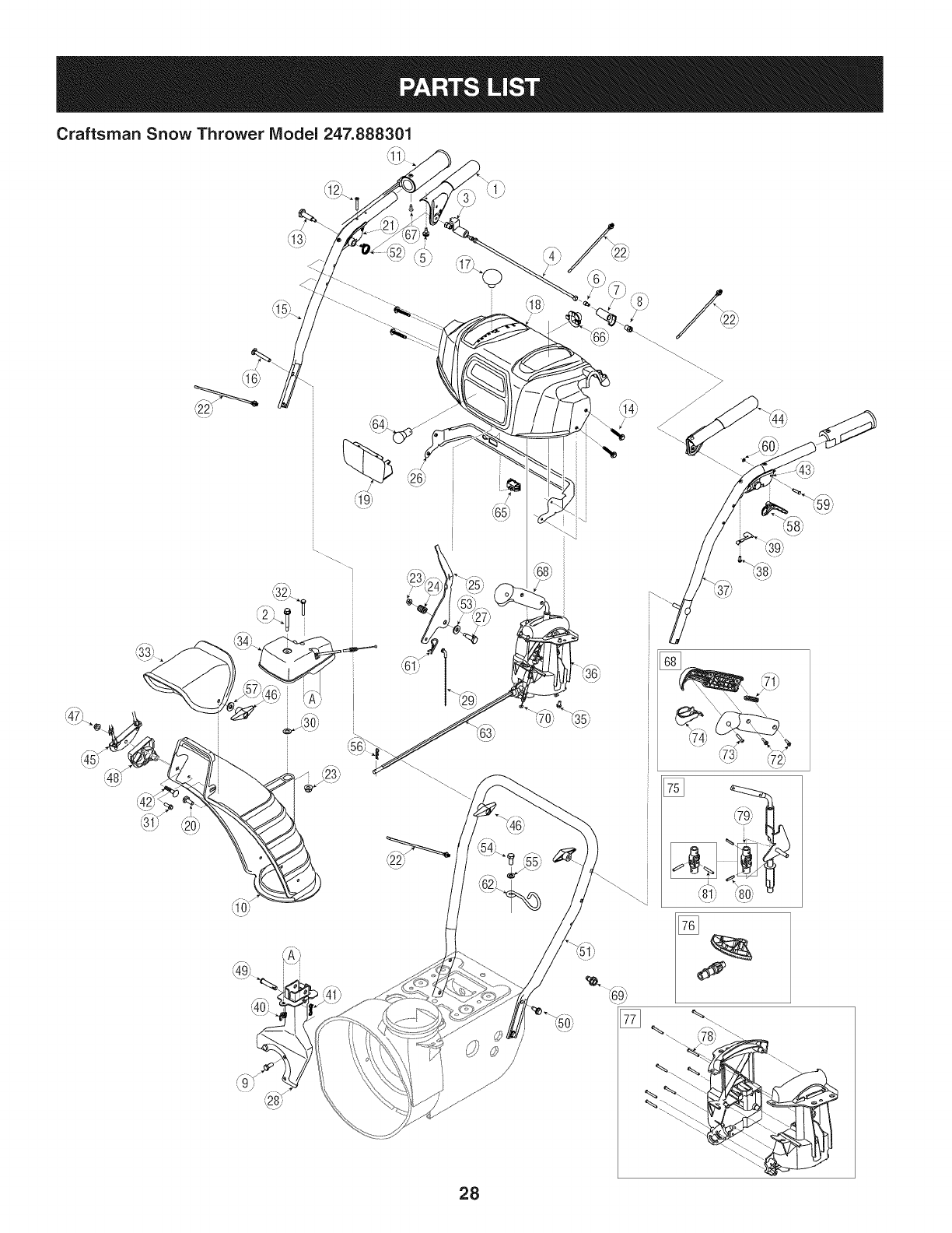 User Manual: Craftsman 247888301 247888301 CRAFTSMAN SNOW THROWER - Manuals and Guides View the owners manual for your CRAFTSMAN SNOW THROWER #247888301. Home:Lawn & Garden Parts:Craftsman Parts:Craftsman SNOW THROWER Manual
