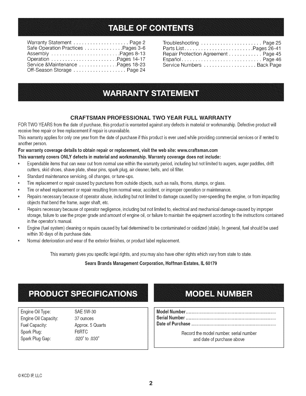 CRAFTSMANPROFESSIONAL TWO YEAR FULL WARRANTY