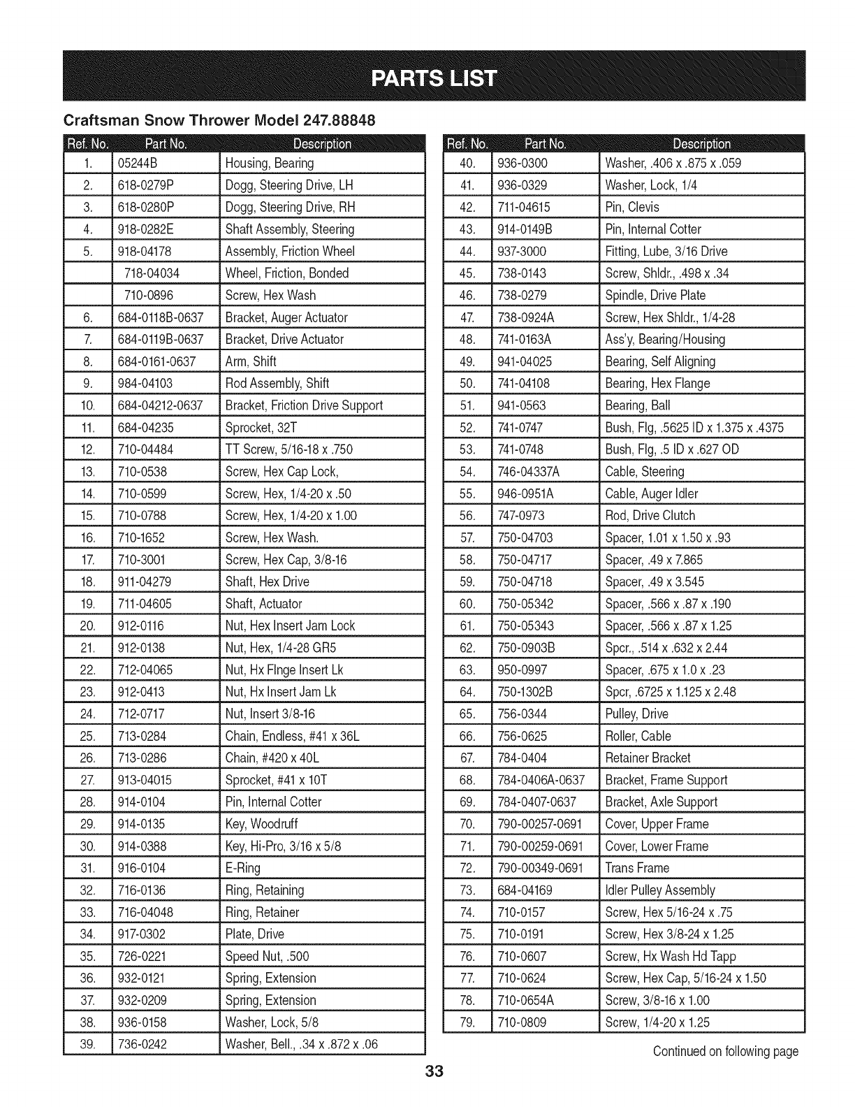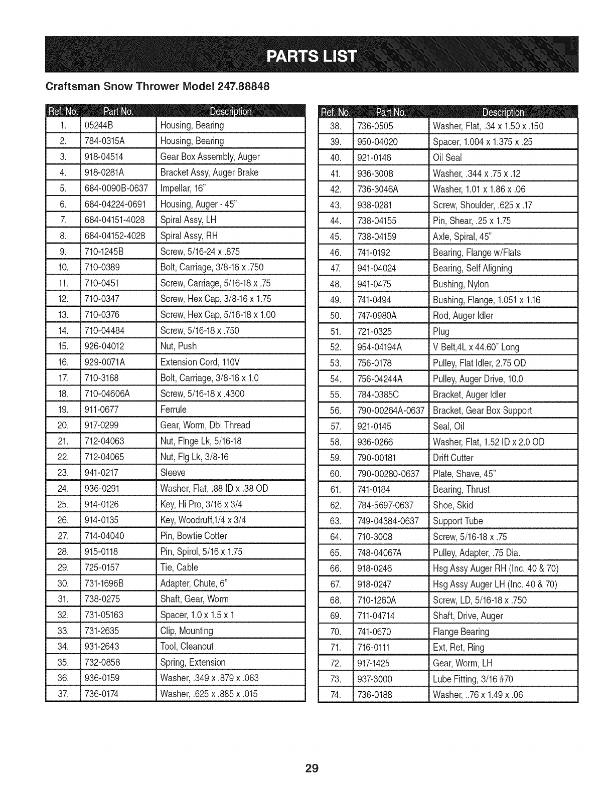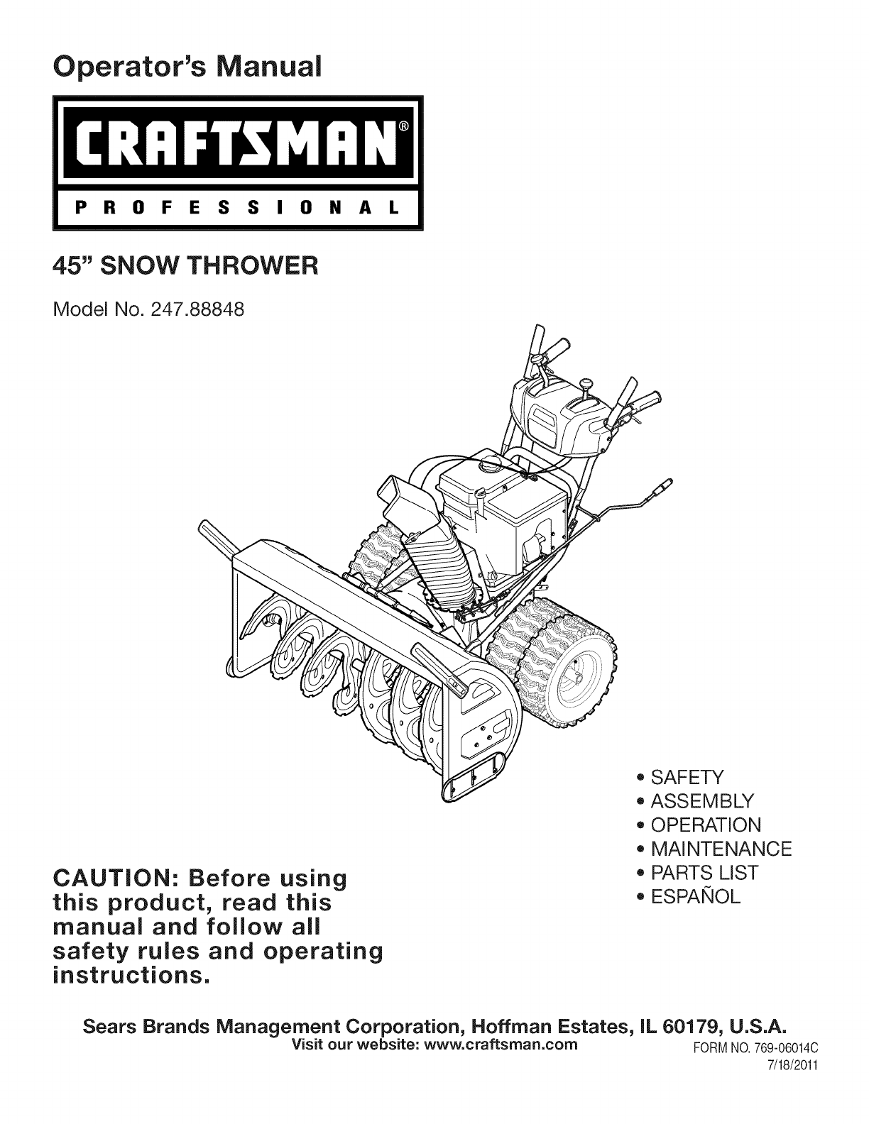 User Manual: Craftsman 24788848 24788848 CRAFTSMAN SNOW THROWER - Manuals and Guides View the owners manual for your CRAFTSMAN SNOW THROWER #24788848. Home:Lawn & Garden Parts:Craftsman Parts:Craftsman SNOW THROWER Manual