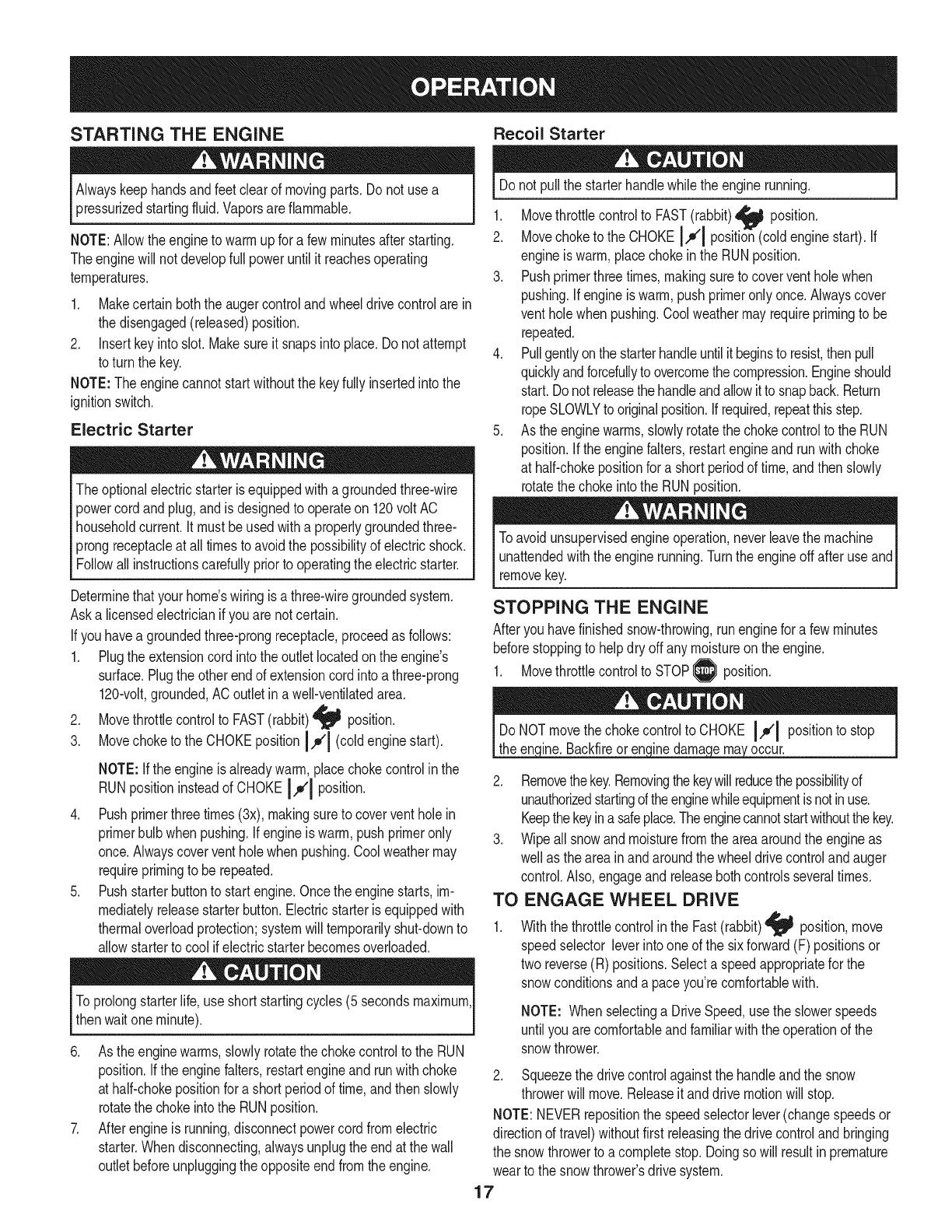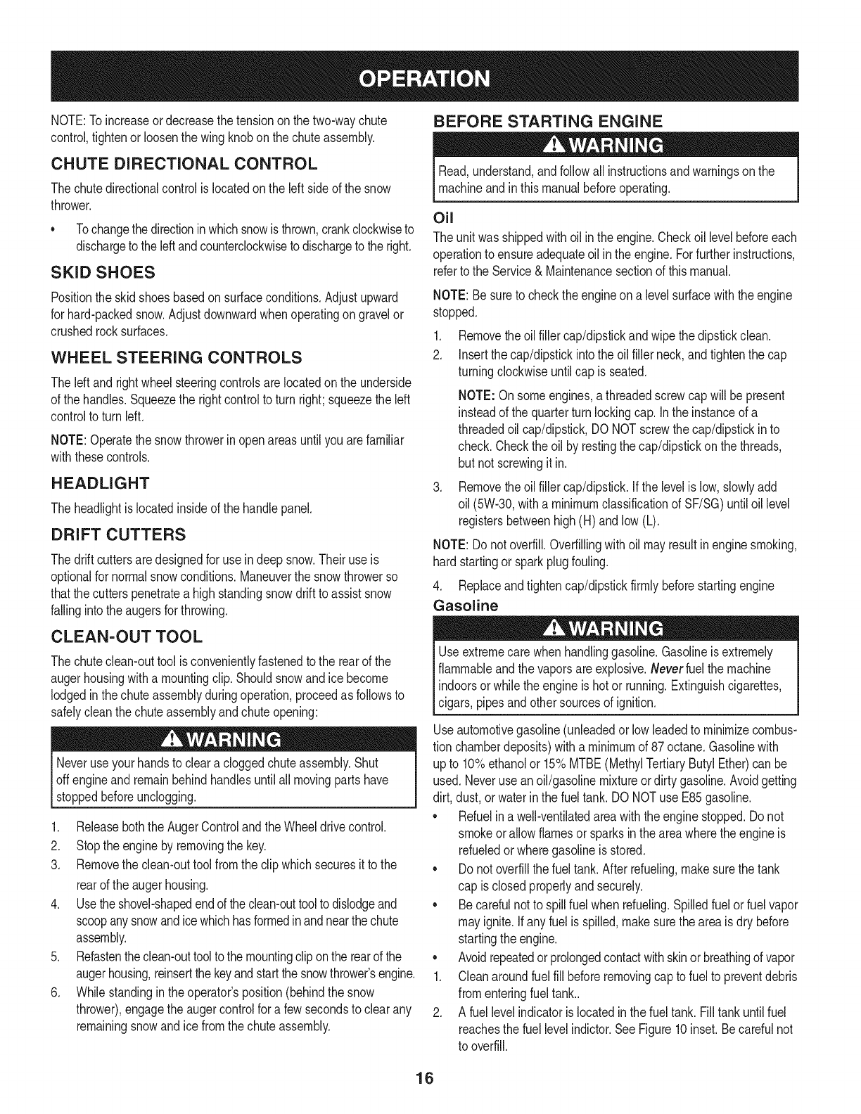 Craftsman 24788848 User Manual SNOW THROWER Manuals And Guides 1107371L