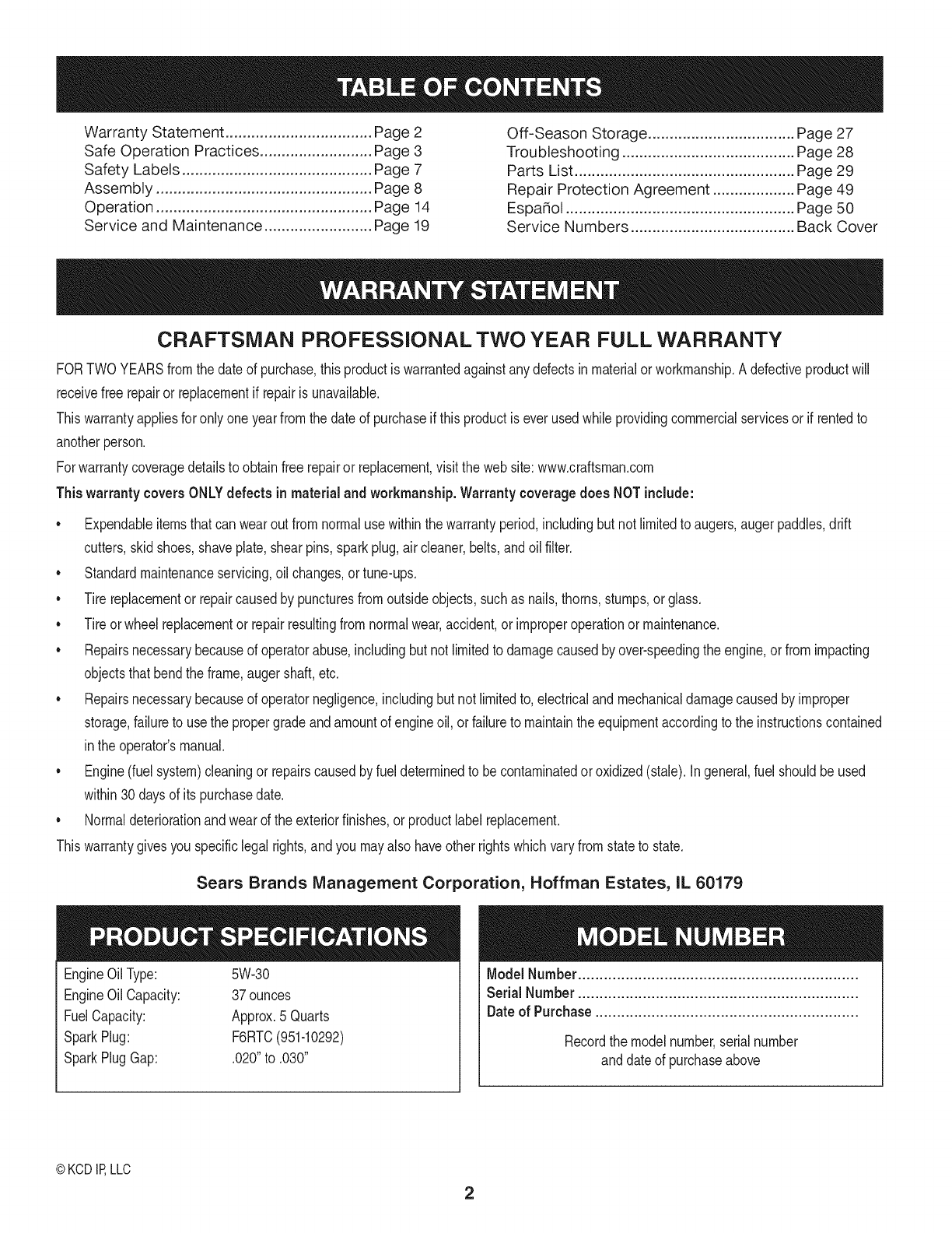 CRAFTSMAN PROFESSIONAL TWO YEAR FULL WARRANTY