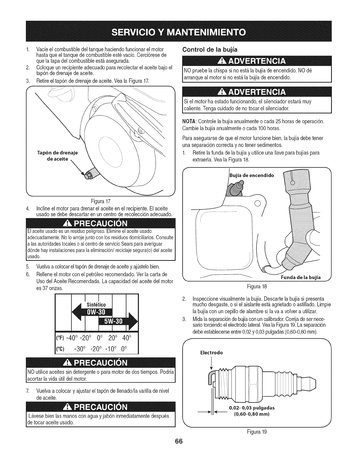 Para los motores con desplazamiento inferior a 225 cc, Categoria C = 125 horas, B = 250 horas y A = 500 horas.