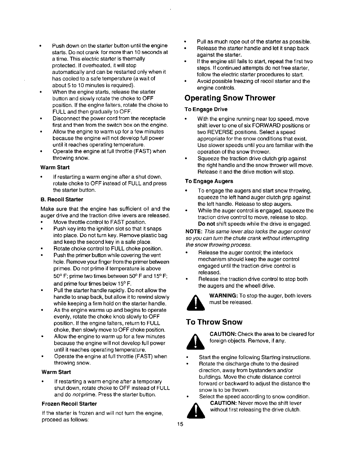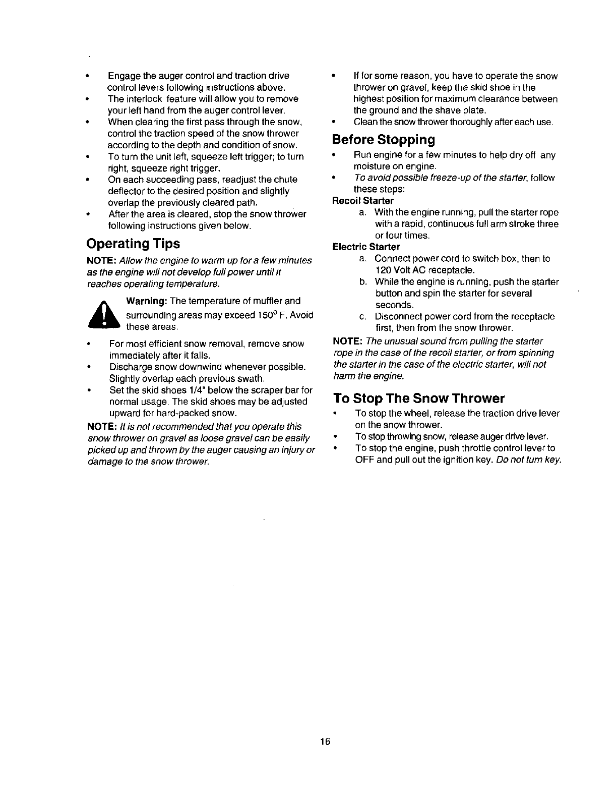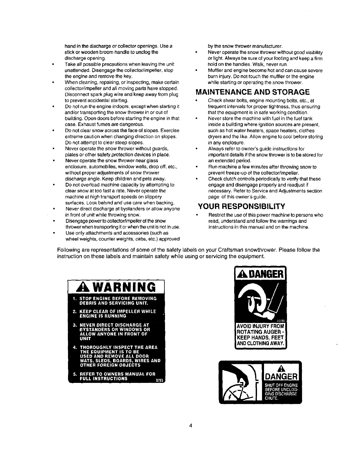 Your snow throwerwas built to be operated according to the rules for safe operation in this