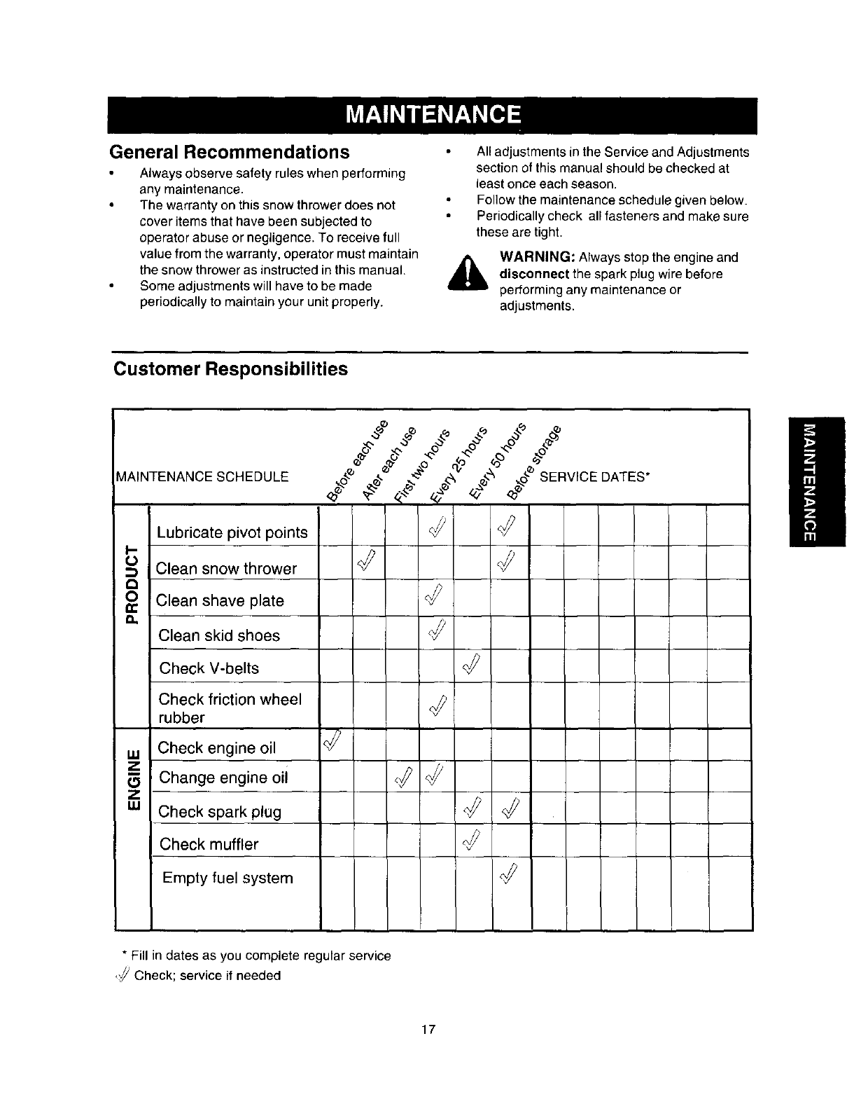 For two years from the date of purchase, when this Craftsman Snow Thrower is maintained, lubricated and tuned
