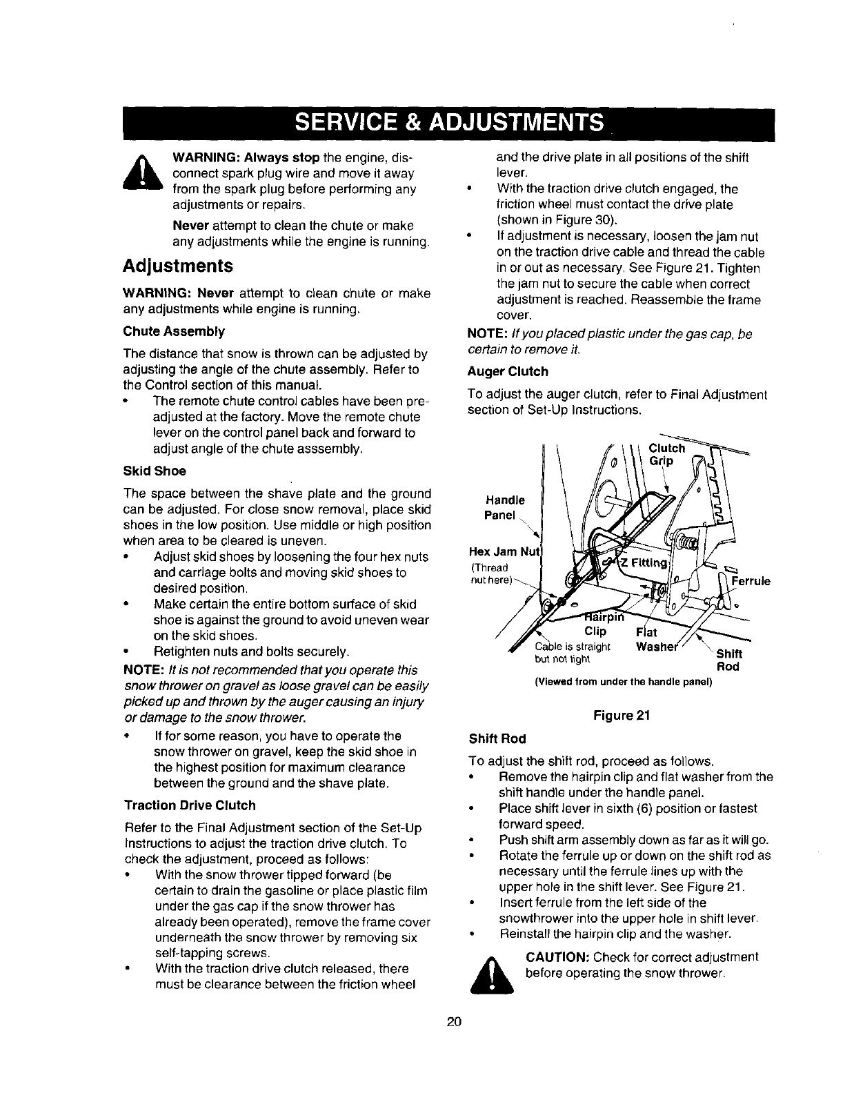Service & Adjustment ......................................... 20
