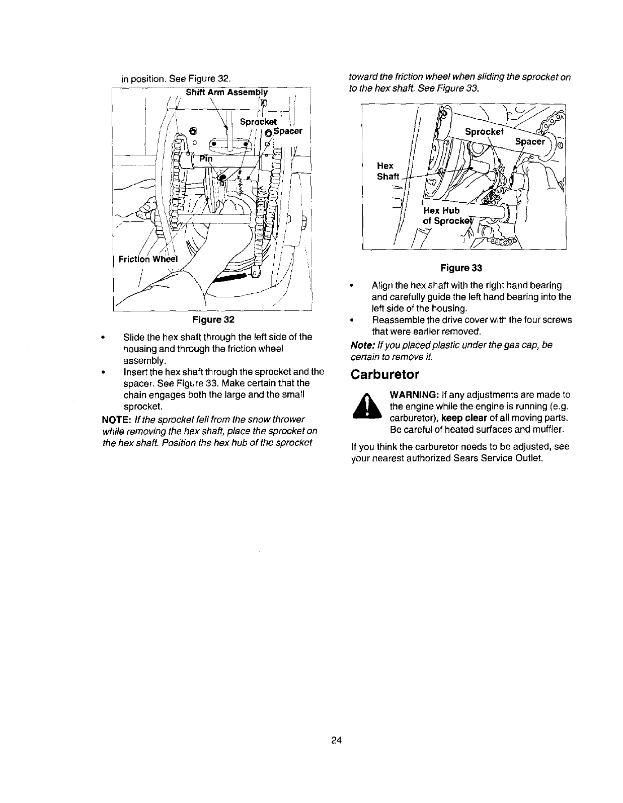 WARRANTY SERVICE IS AVAILABLE BY RETURNING THE CRAFTSMAN SNOW THROWER TO THE NEAREST