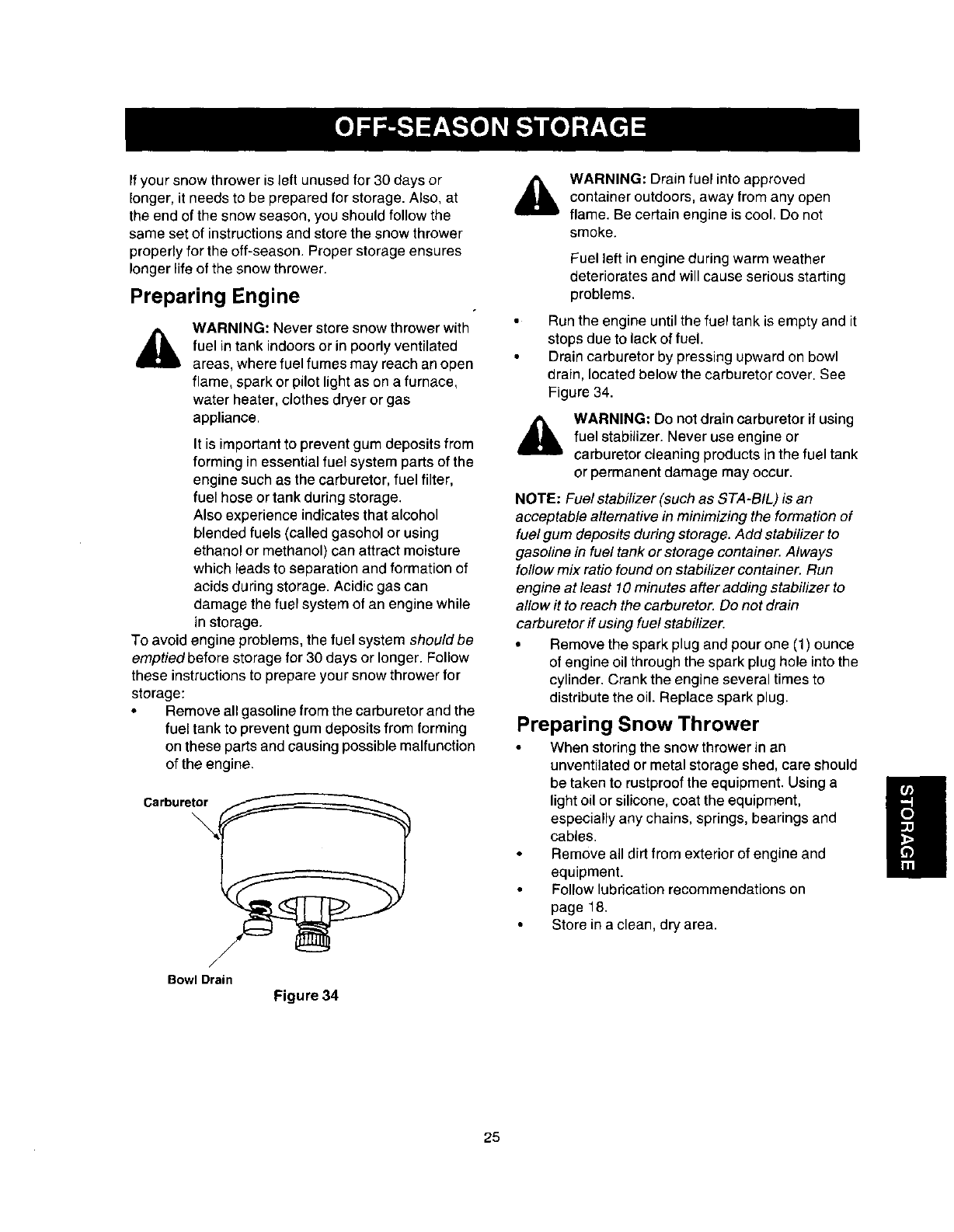 Off-Season Storage ........................................... 25