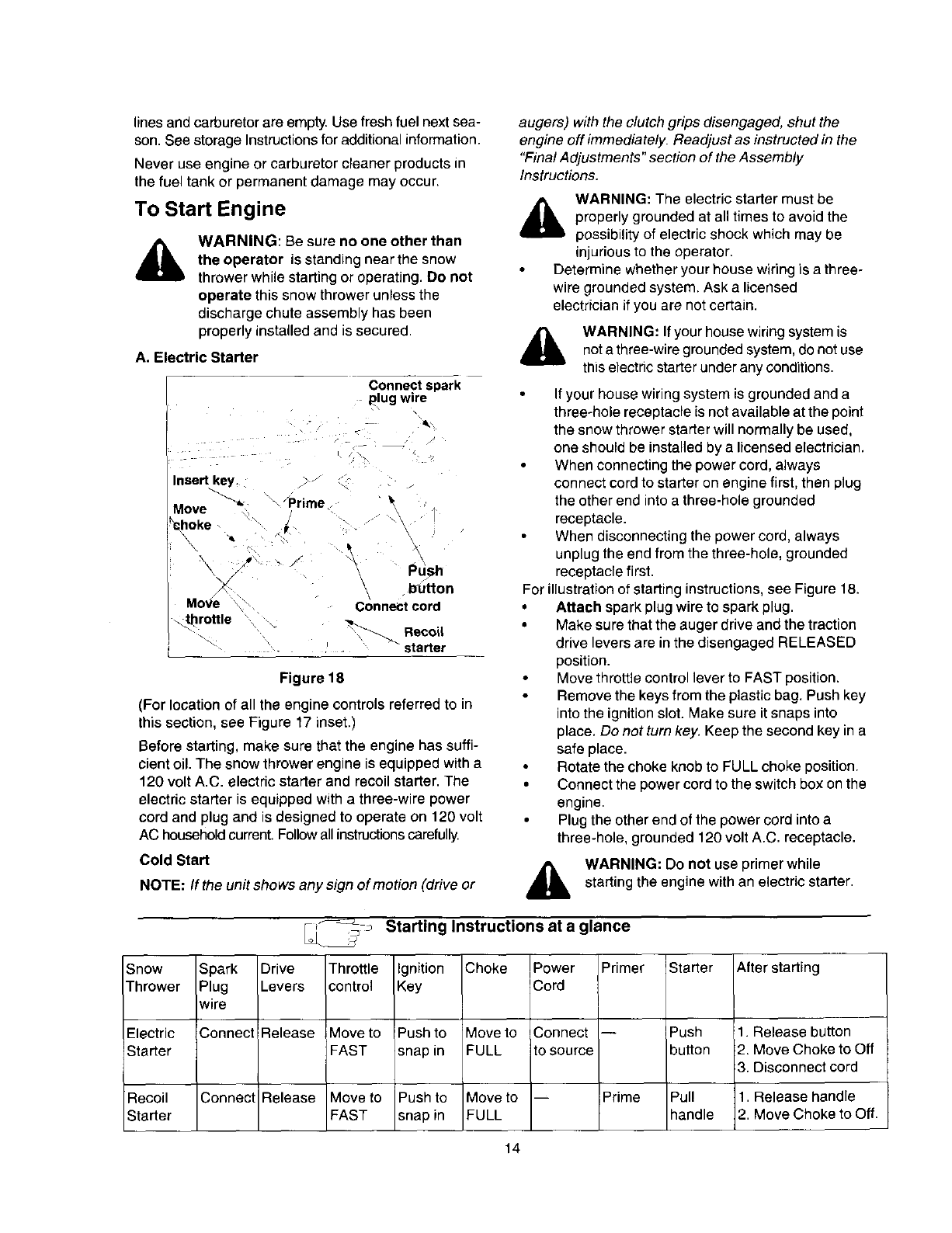 snow thrower. Children 14 years old and over should