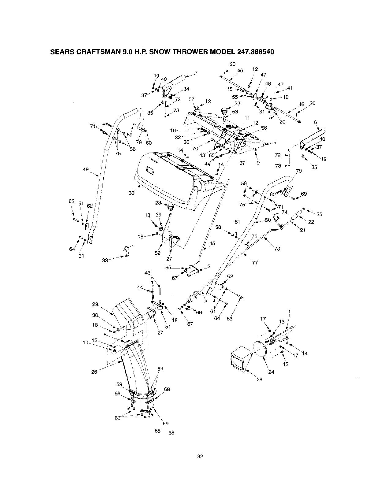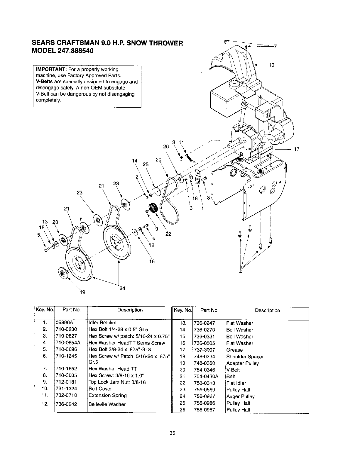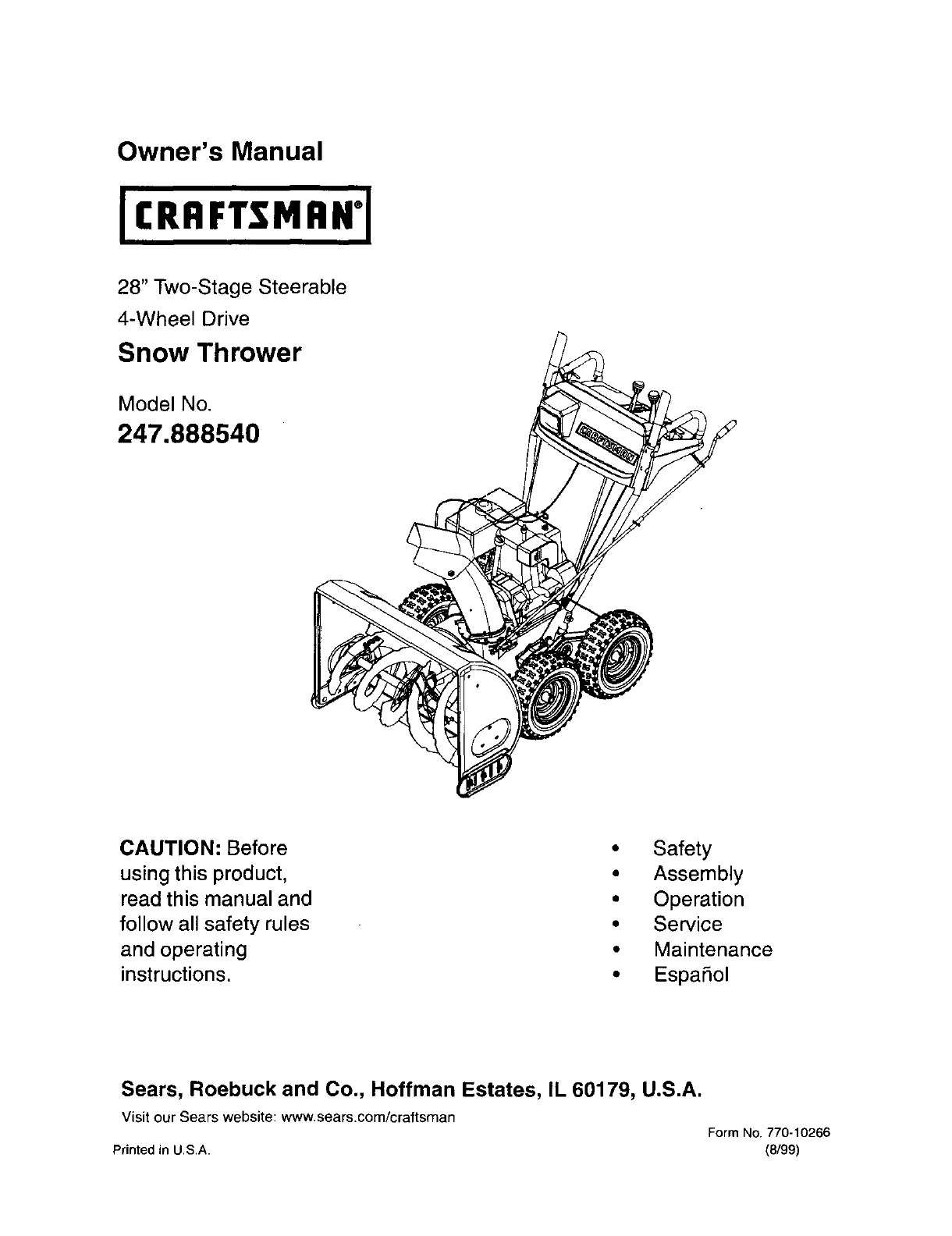 User Manual: Craftsman 247888540 247888540 CRAFTSMAN SNOW THROWER - Manuals and Guides View the owners manual for your CRAFTSMAN SNOW THROWER #247888540. Home:Lawn & Garden Parts:Craftsman Parts:Craftsman SNOW THROWER Manual