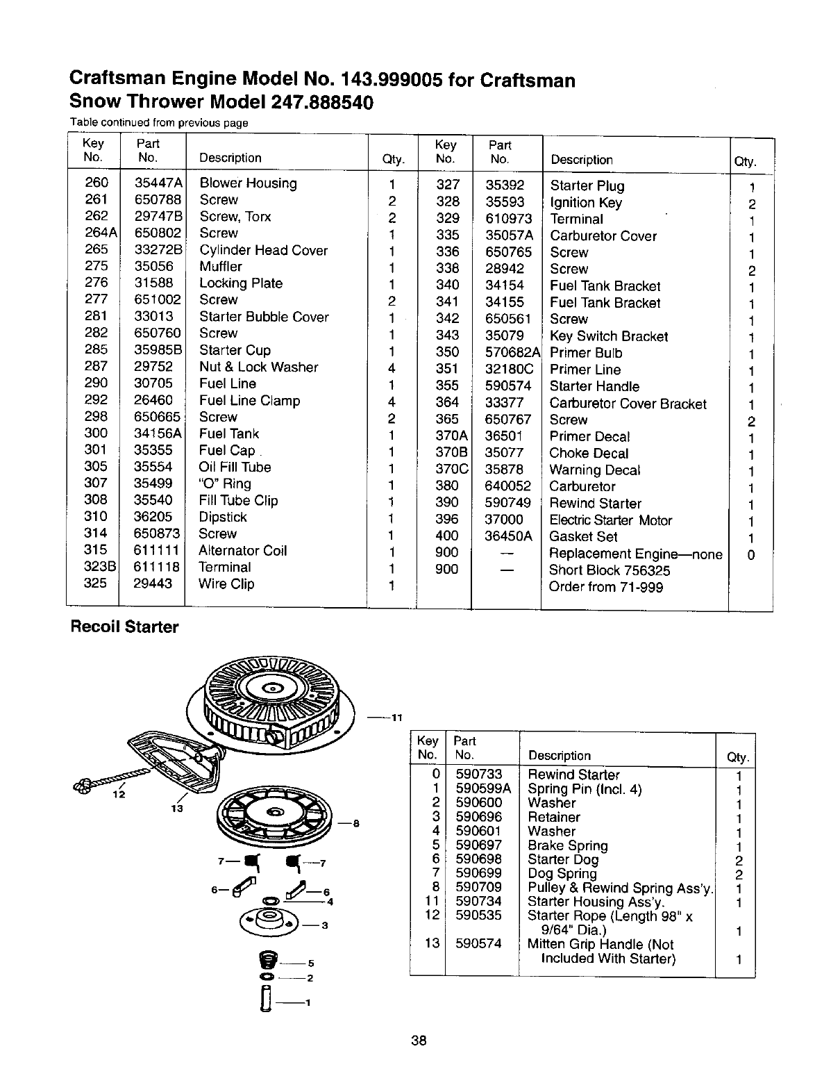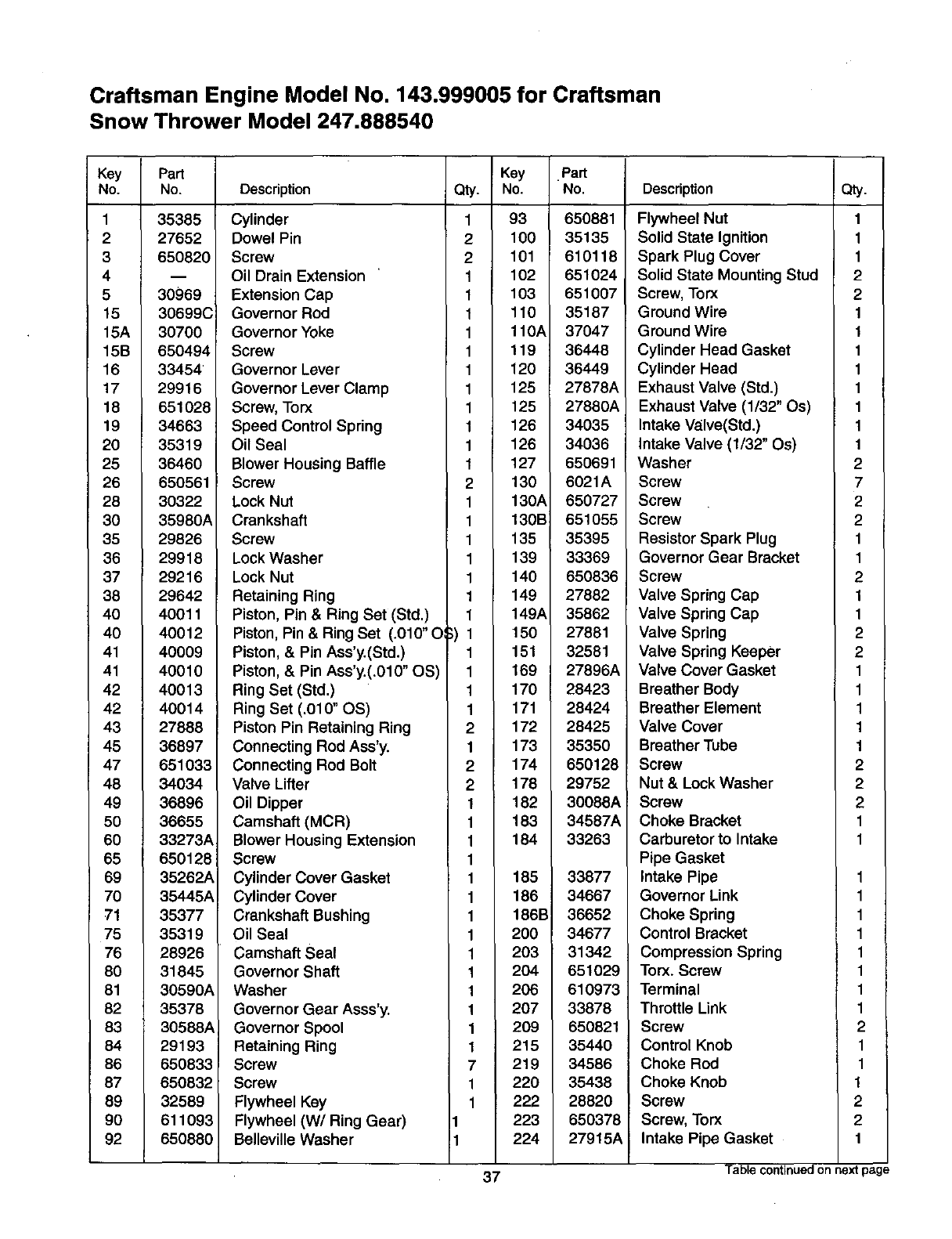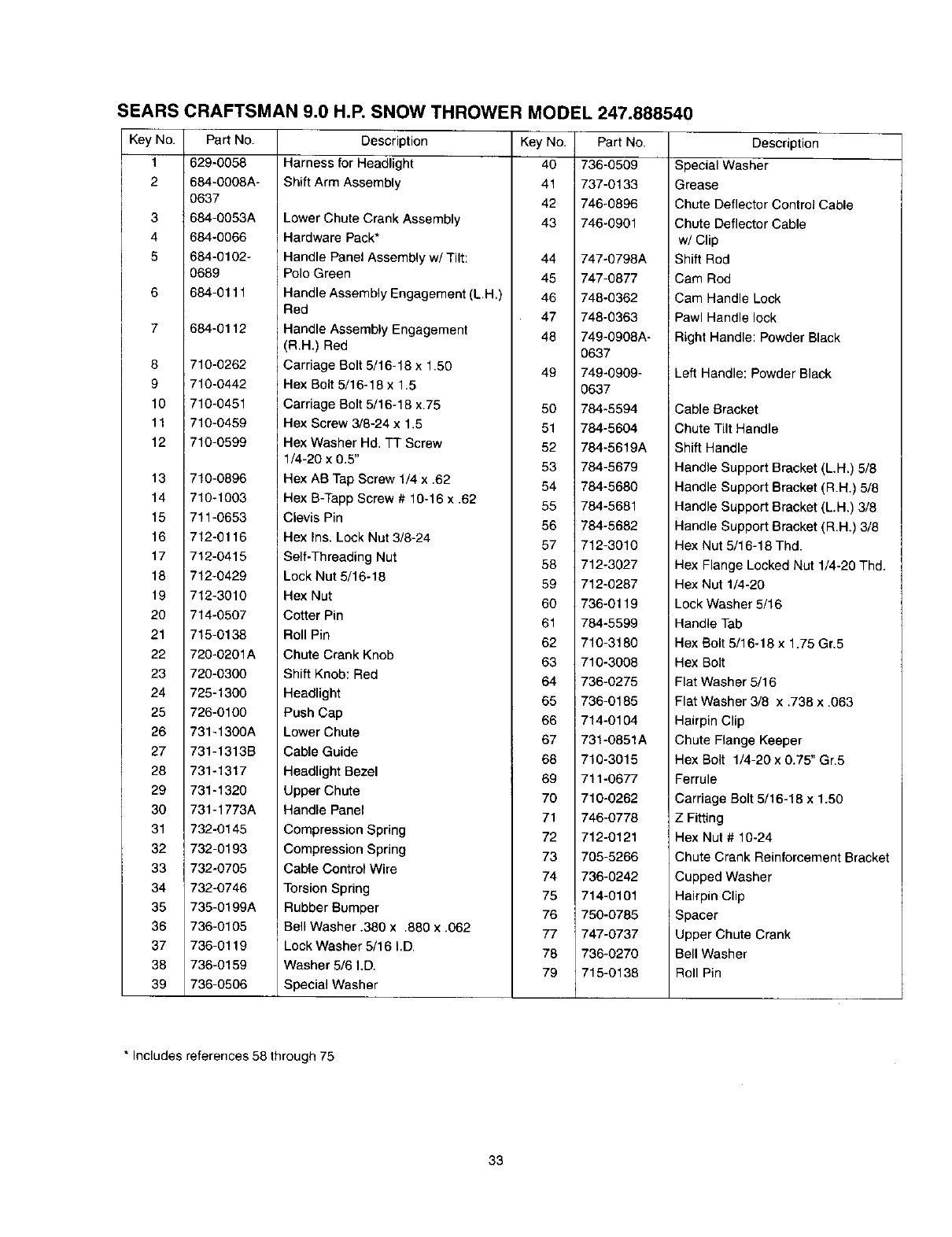 User Manual: Craftsman 247888540 247888540 CRAFTSMAN SNOW THROWER - Manuals and Guides View the owners manual for your CRAFTSMAN SNOW THROWER #247888540. Home:Lawn & Garden Parts:Craftsman Parts:Craftsman SNOW THROWER Manual