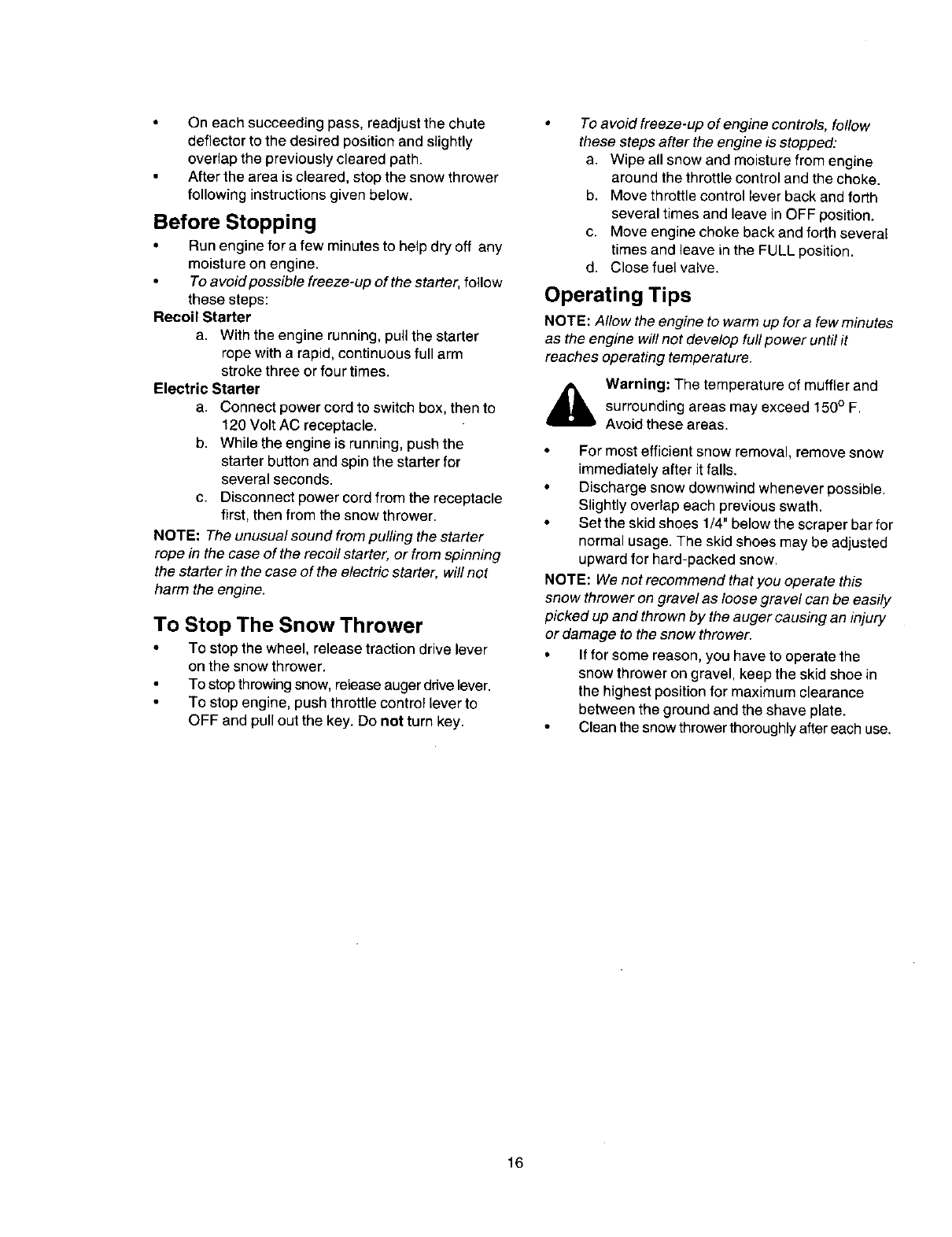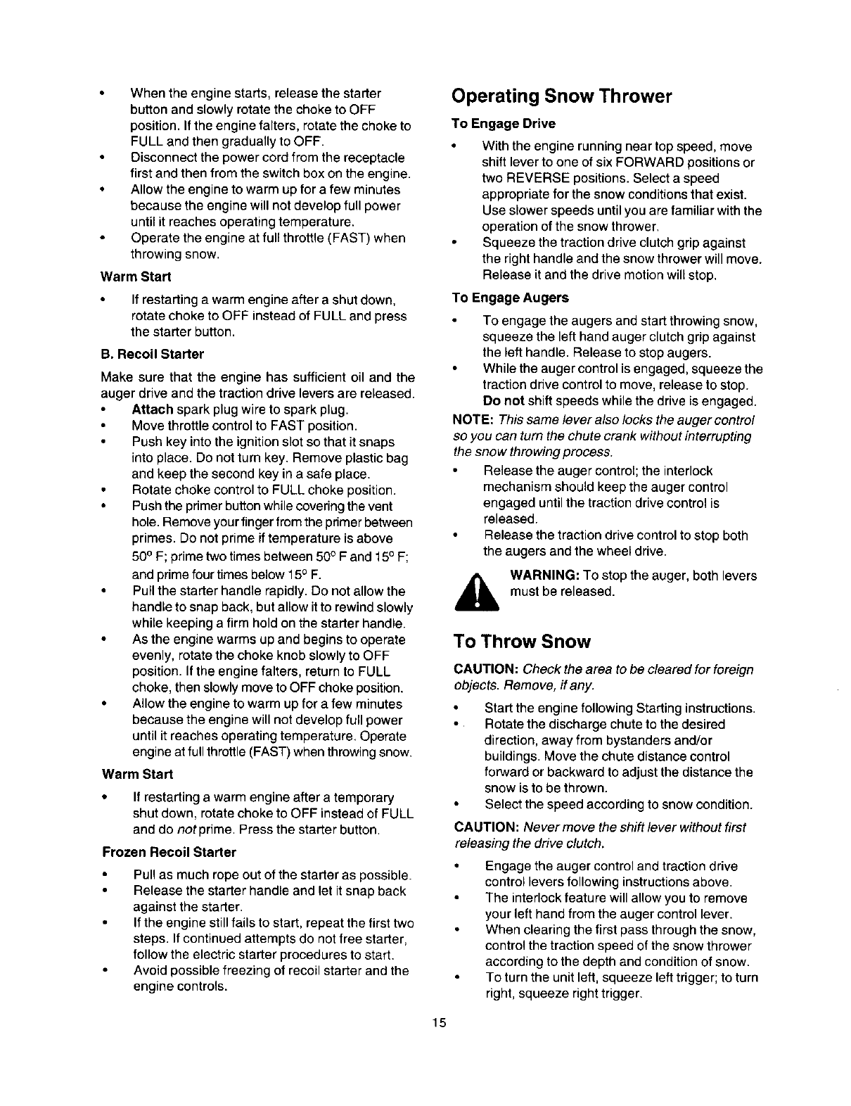 Your snow thrower was built to be operated according to the rules for safe operation inthis