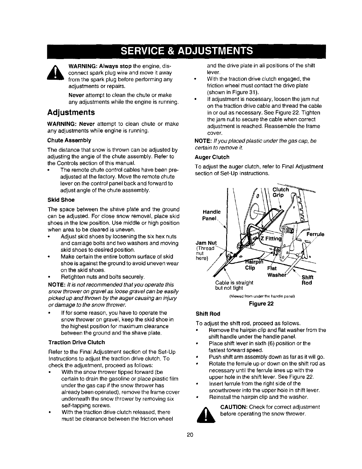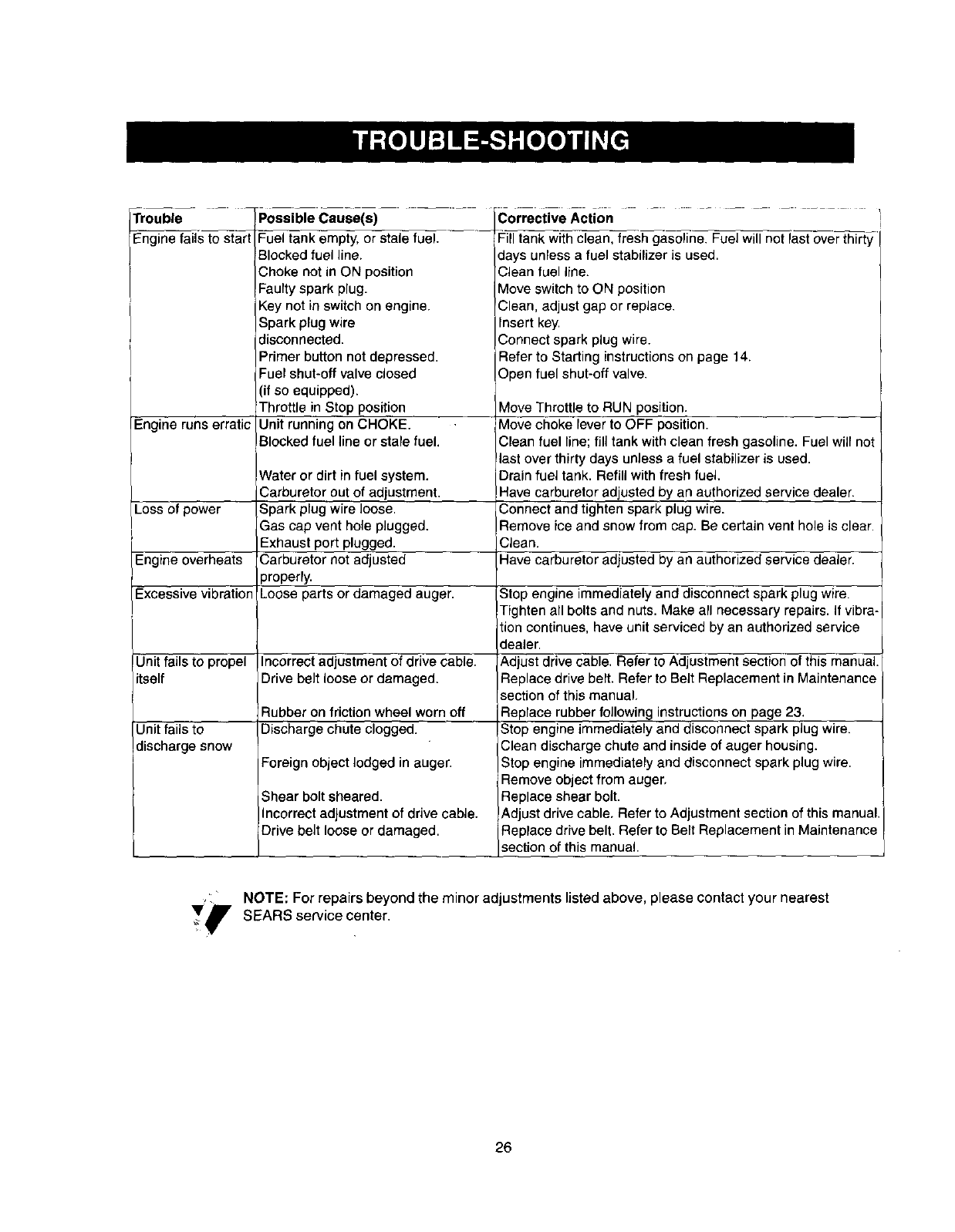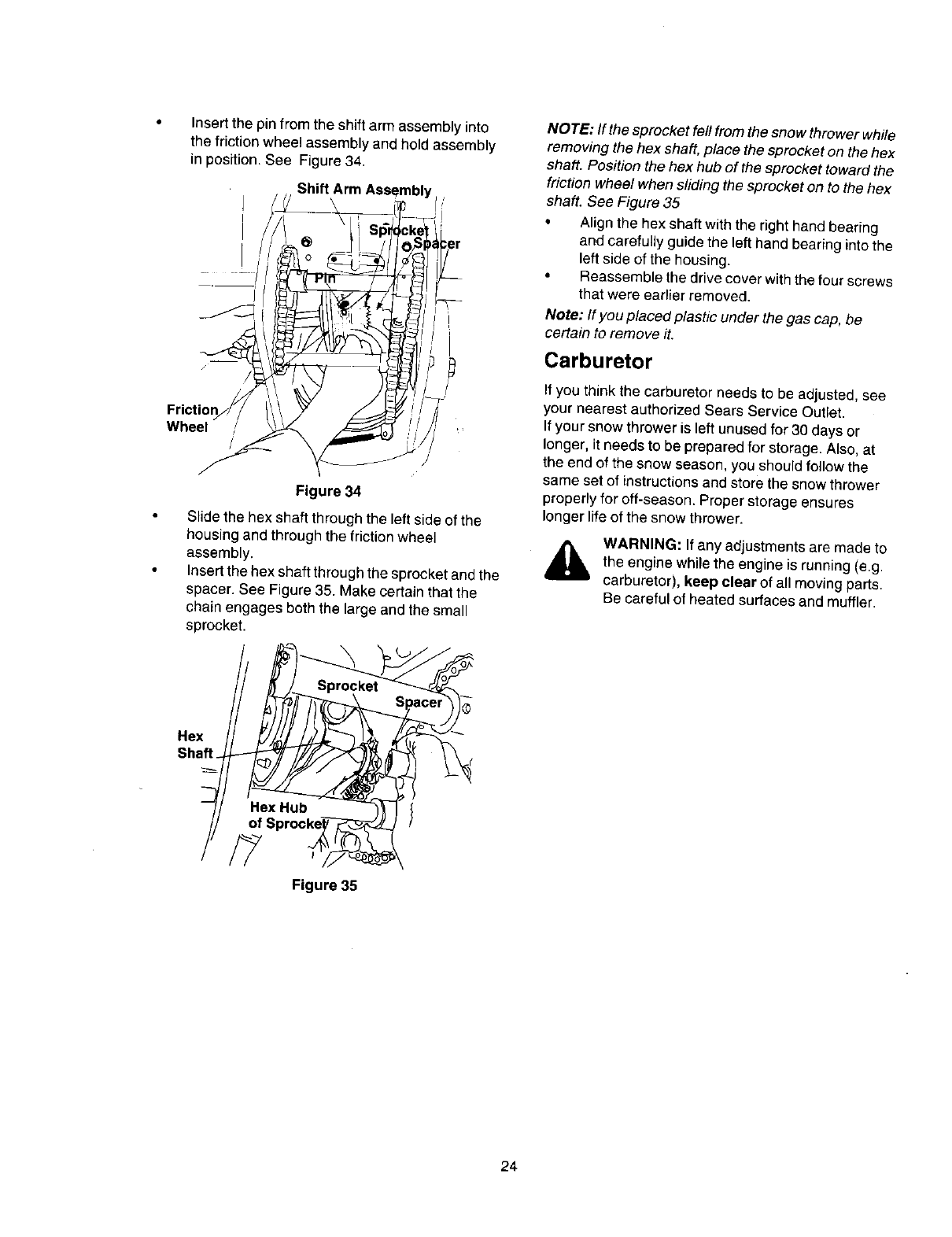 WARRANTY SERVICE ISAVAILABLEBY RETURNING THE CRAFTSMAN SNOW THROWER TO THE NEAREST