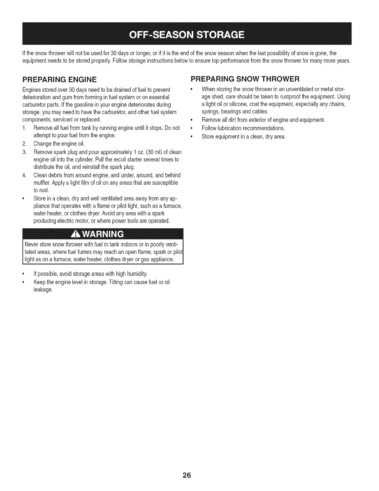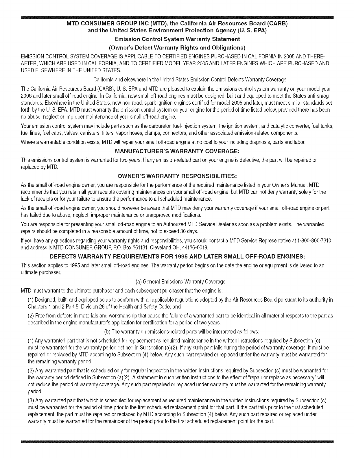 storage,failureto usethe propergradeandamountof engineoil, or failureto maintainthe equipmentaccordingto the instructionscontained