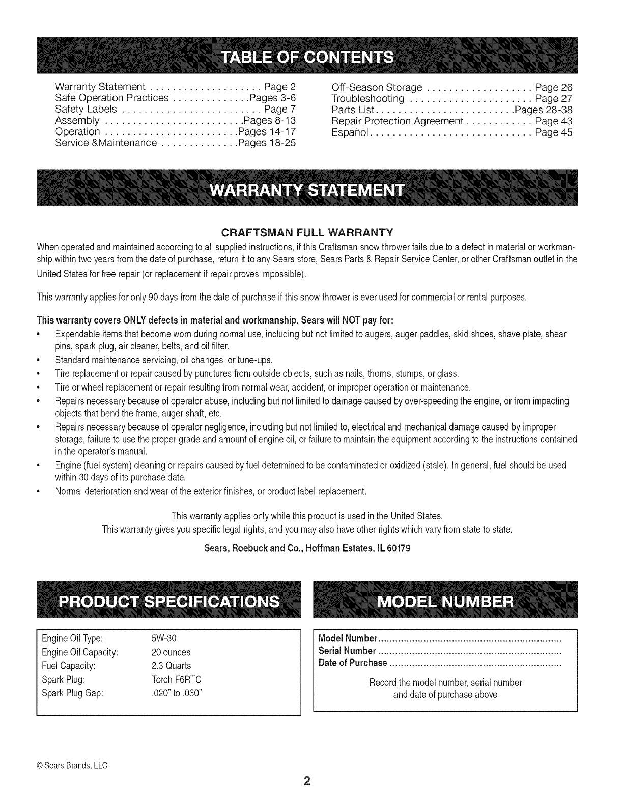 shipwithintwoyearsfromthe dateof purchase,returnit to any Searsstore,SearsParts&RepairServiceCenter,orotherCraftsmanoutletin the