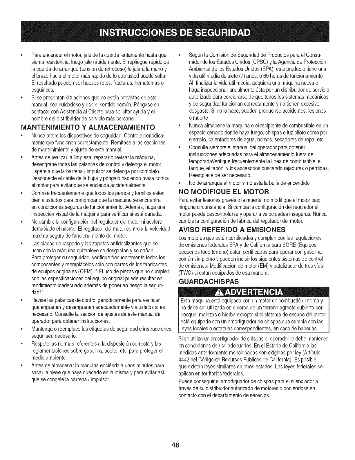 el motor cumple con las reglas de emisi6n, descontando el mantenimiento adecuado deJmismo segQn las instrucciones de oper-
